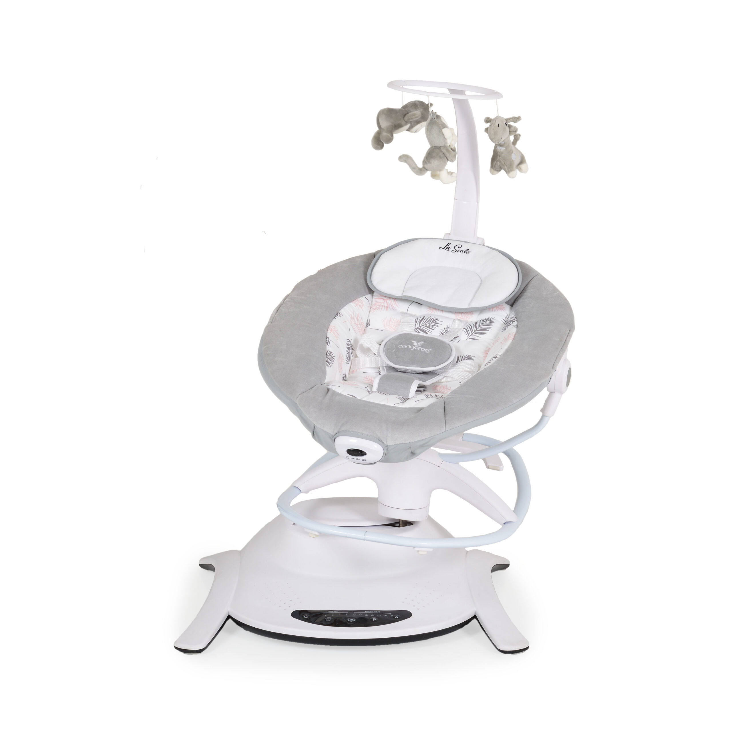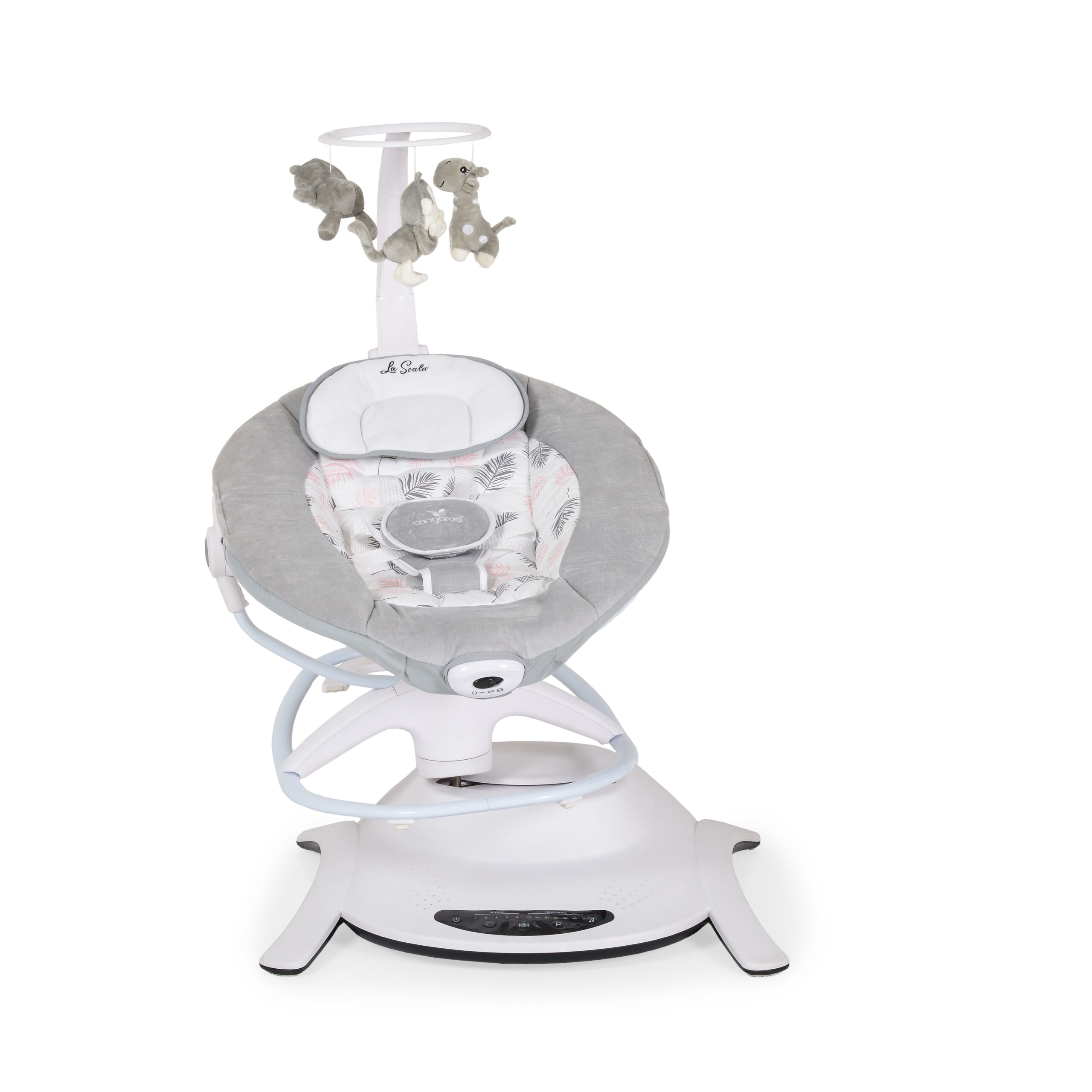 Електрическата люлка La Scala, Cangaroo е незаменим помощник за всеки родител. Тя съчетава удобството на люлка и шезлонг с добавена вибрация, за да осигури максимален комфорт и спокойствие на вашето бебе. La Scala имитира естественото странично люлеене на родителите с 6 различни режима и 5 степени на скорост, които нежно успокояват и приспиват детето. Благодарение на компактния си размер, люлката лесно се побира във всяко помещение, така че винаги да сте заедно.