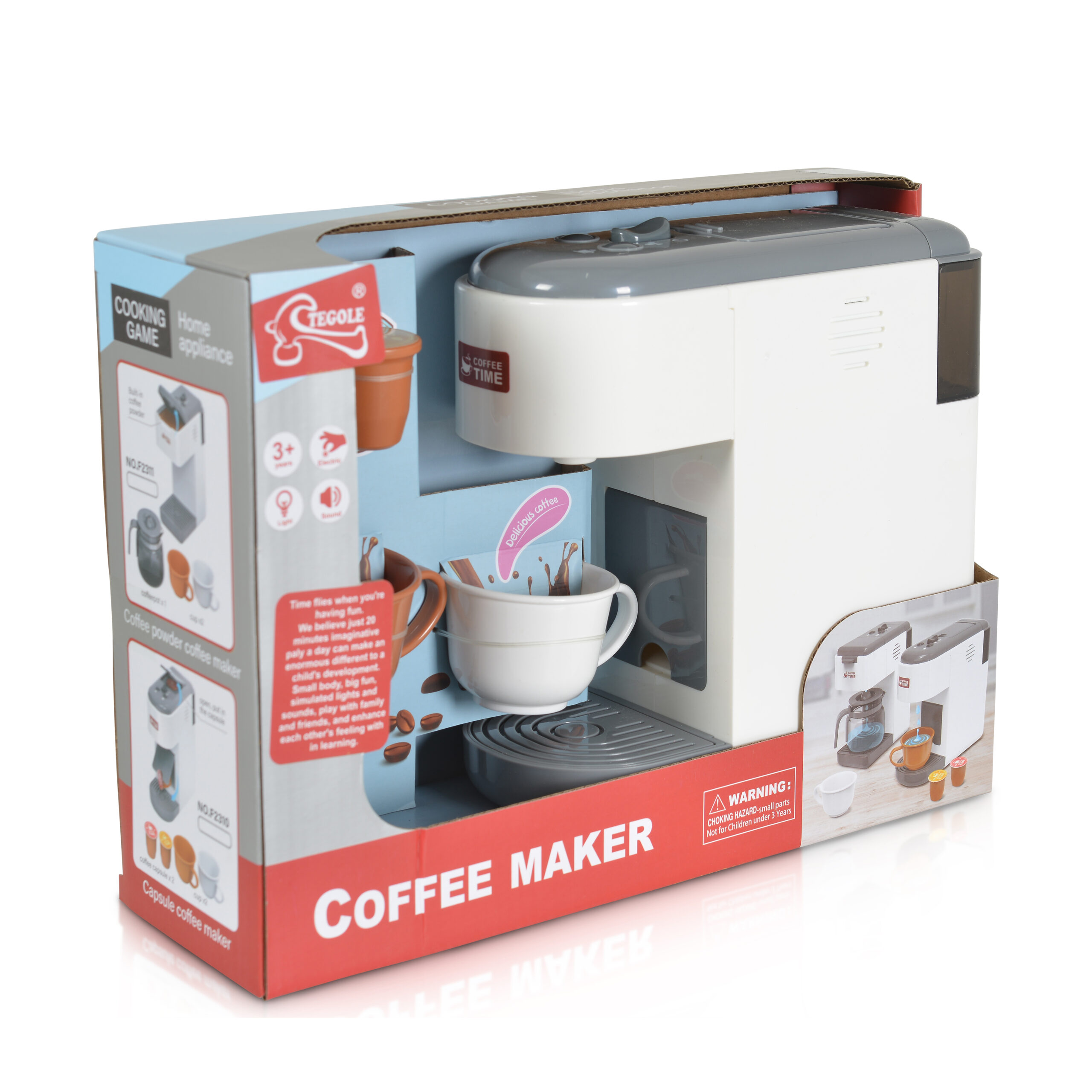Играчката е с реалистичен дизайн, симулира реалното приготвяне на кафе.