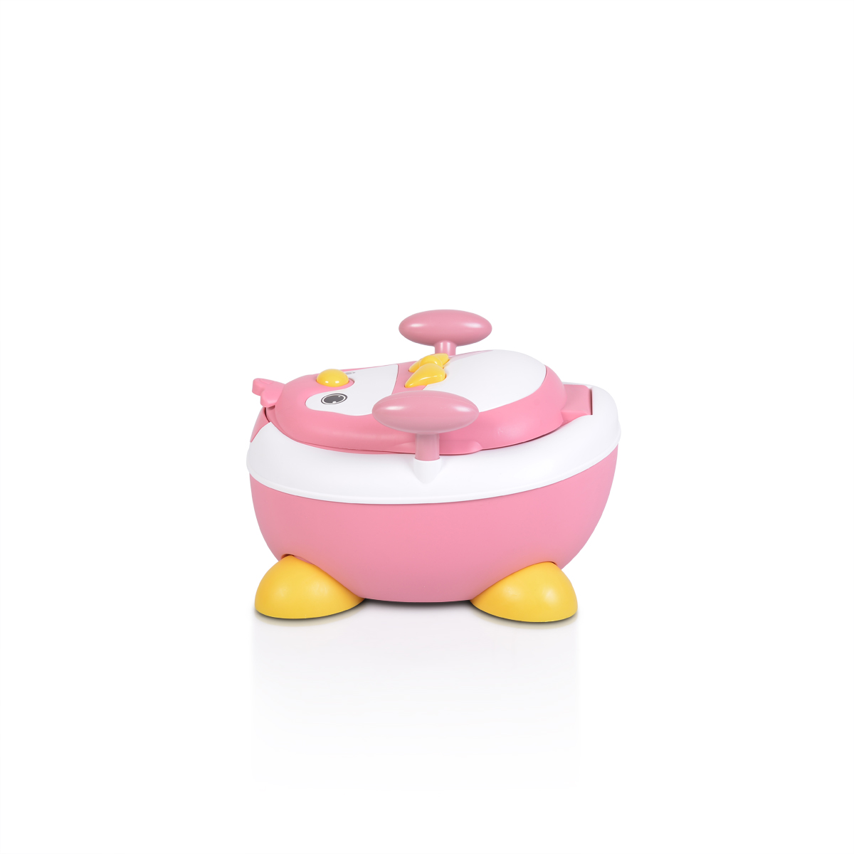 Гърнето е оборудвано с капак и сваляема ваничка за отпадъци за по – голямо удобство на майката и детето. Благодарение на дръжките и неплъзгащата основа, родителите ще се спокойни, че тяхното съкровище е в безопасност по време на употреба.