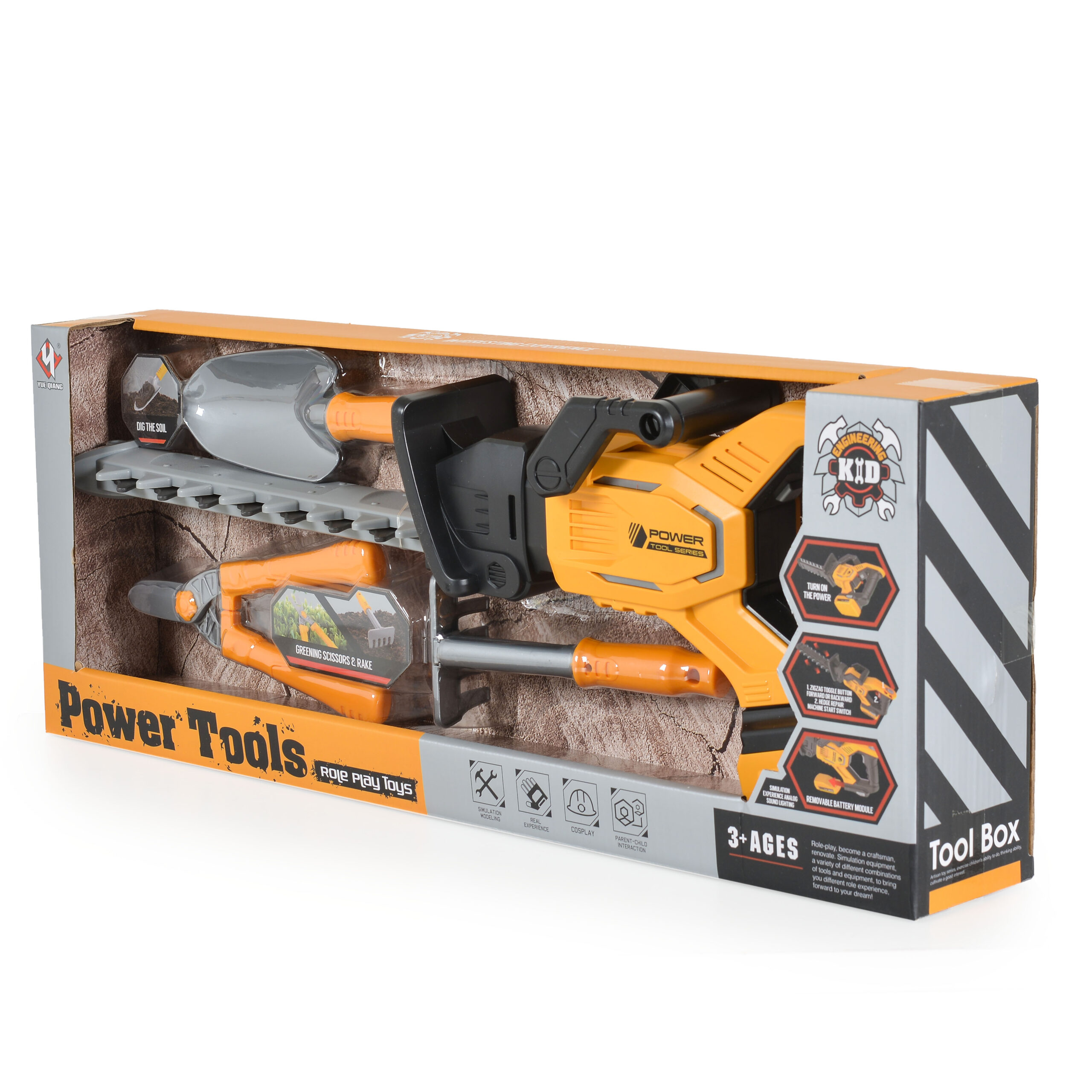 Комплектът включва реалистичен тример, както и инструменти като градинска ножица и лопатка, което прави играта още по-забавна и образователна.