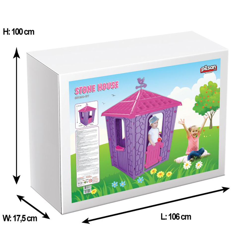 Детска пластмасова къща с имитация на камък е идеална за игра на повече от едно дете.