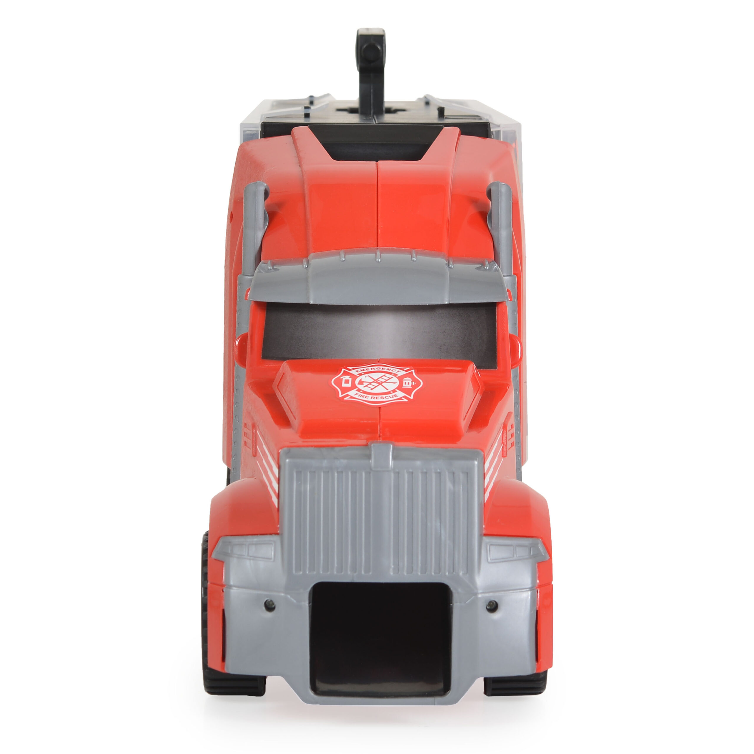 Автовозът предлага удобно място за съхранение на включените малки коли, както и допълнителни отделения за други играчки. От едната страна на камиона детето може да подреди всички превозни средства, а от другата – да съхранява други любими играчки.