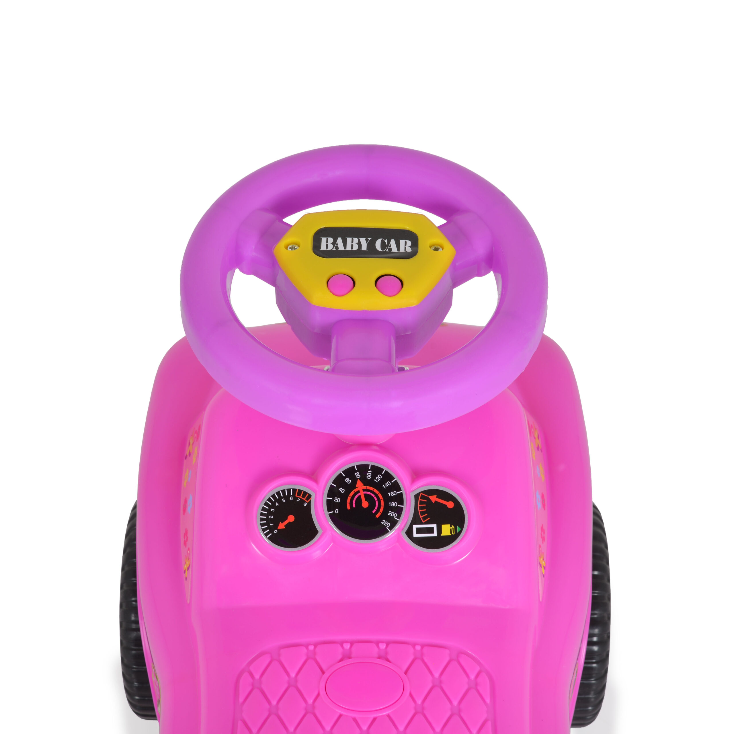 Върху волана са разположени бутони за различни забавни мелодии.