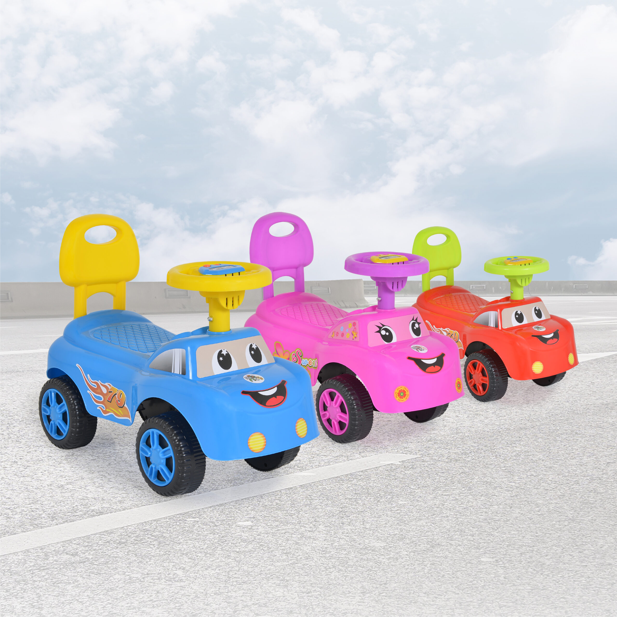 Детската пластмасова кола за яздене е с дизайн, който допринася за развитието на моториката и баланса на детето.
