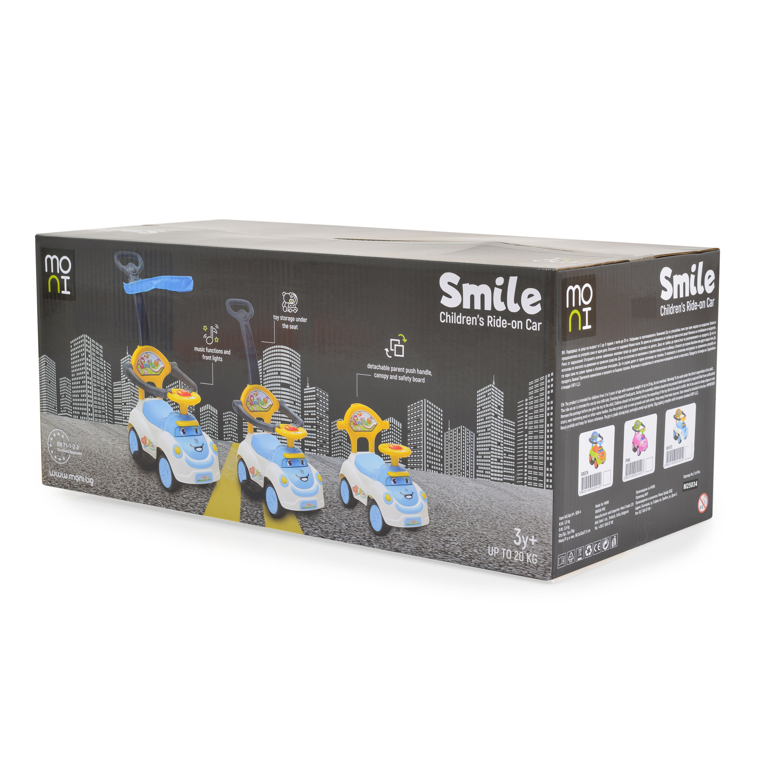 Детската кола за яздене Smile от Moni е създадена, за да осигури на детето часове забавление и комфорт по време на игра. Подходяща за деца на възраст от 3 до 5 години, колата за яздене Smile осигурява безопасност, комфорт и забавление по време на игра.