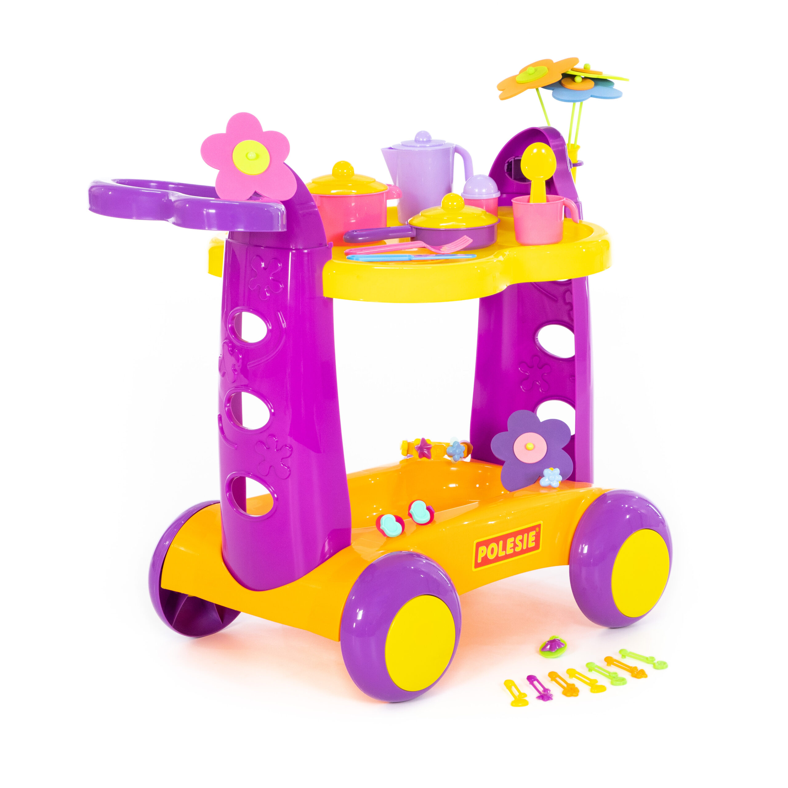 Детската количка за сервиране от Polesie Toys ще превърне играта в забавно кулинарно приключение. Подходяща за ролеви игри, тя насърчава въображението, координацията и социалните умения на децата.