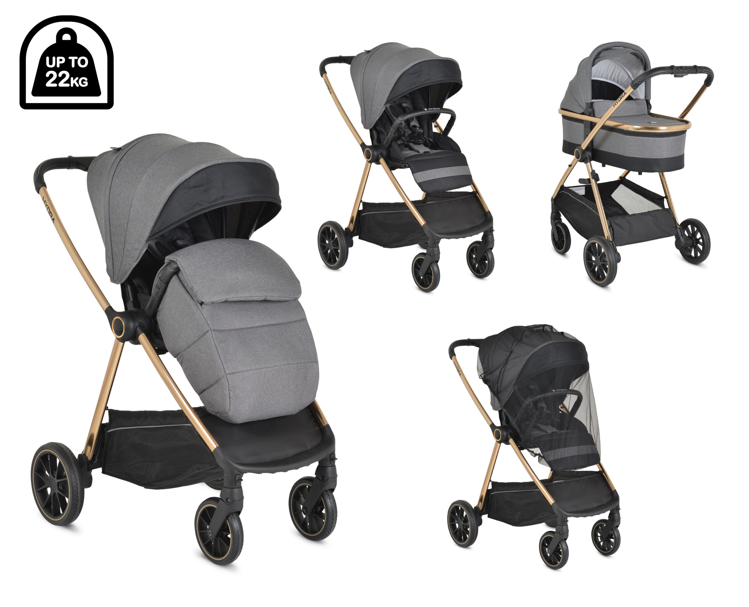 Страхотният модел Hydra 2 в 1 съчетава модерен дизайн, комфорт, безопасност и лесна маневреност. Количката прави ежедневните разходки приятни и удобни. За допълнителен комфорт и функционалност може да се добави универсална степенка Follow Me за второ дете.