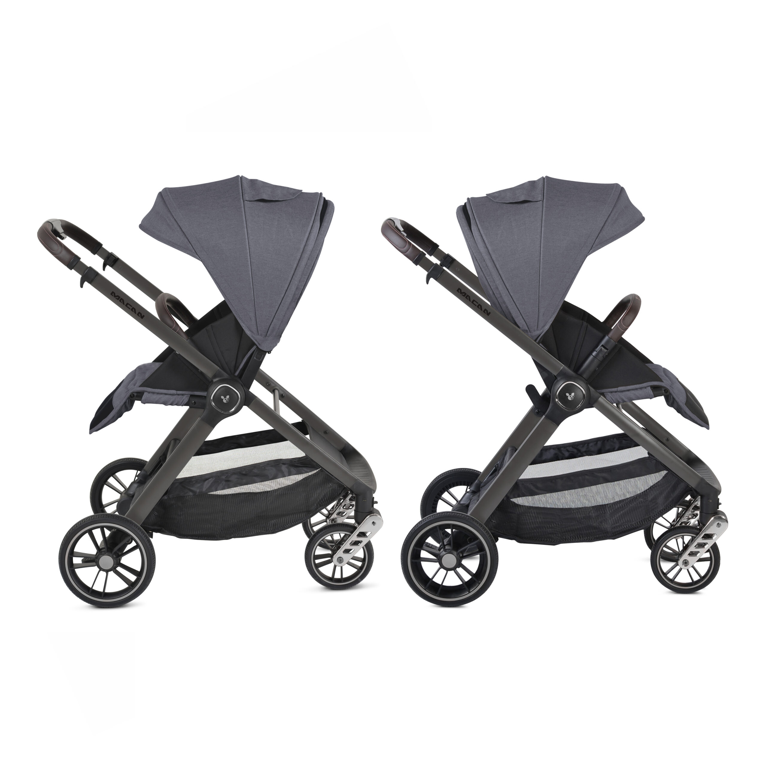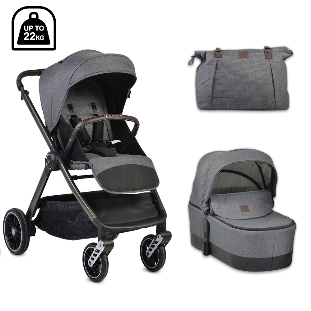 Страхотният модел Macan 2 в 1, Cangaroo съчетава модерна визия, комфорт и безопасност за Вашето бебе. Количката е маневрена, лека и лесна за управление, което прави ежедневните разходки истинско удоволствие. За още по-голямо удобство и функционалност може да се добави универсална степенка Follow Me за второ дете.