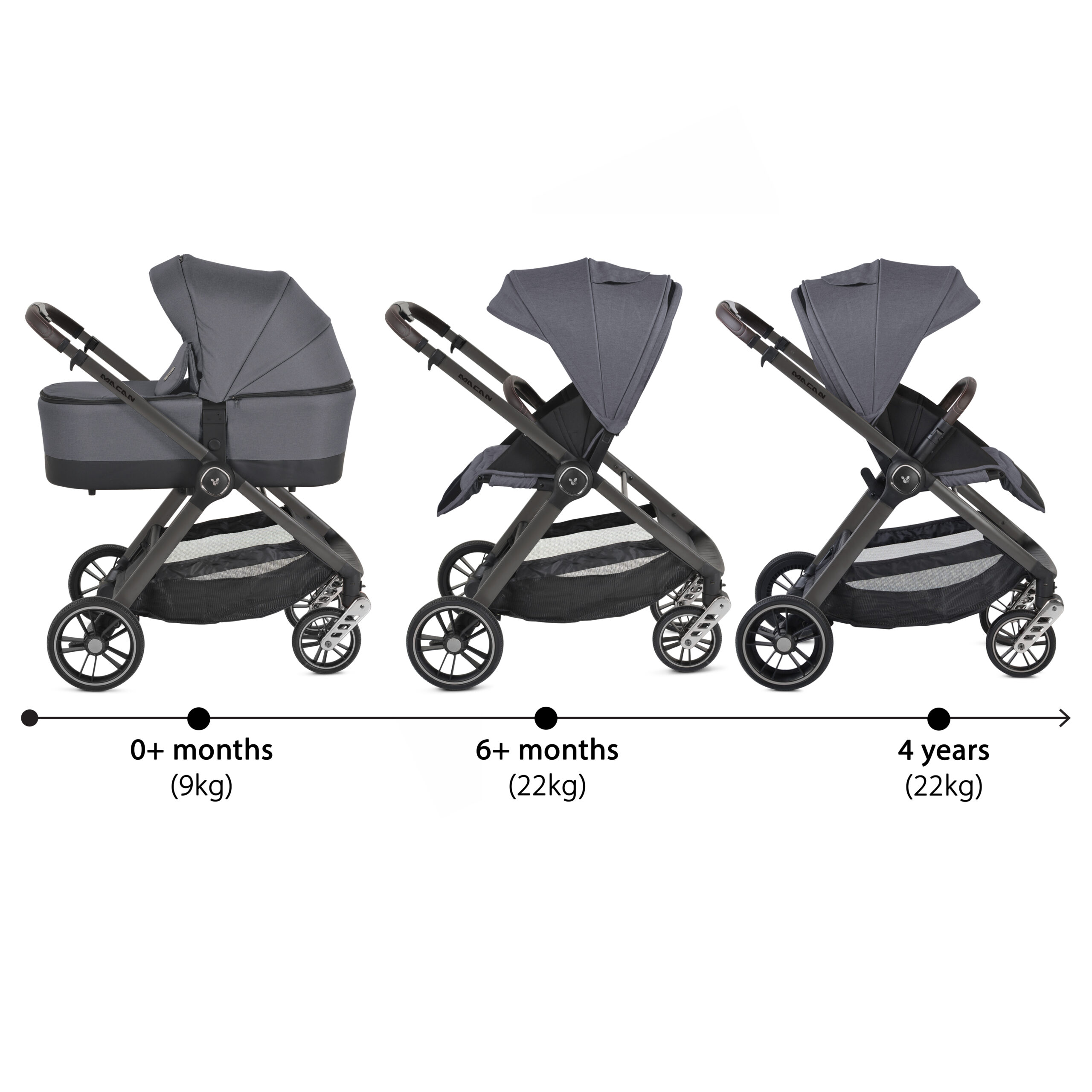 • Съвместим със стол за кола I-SIZE 40–87 см Macan / Icon / Hydra (с адаптери) и стол за кола Maxi Cosi CabrioFix