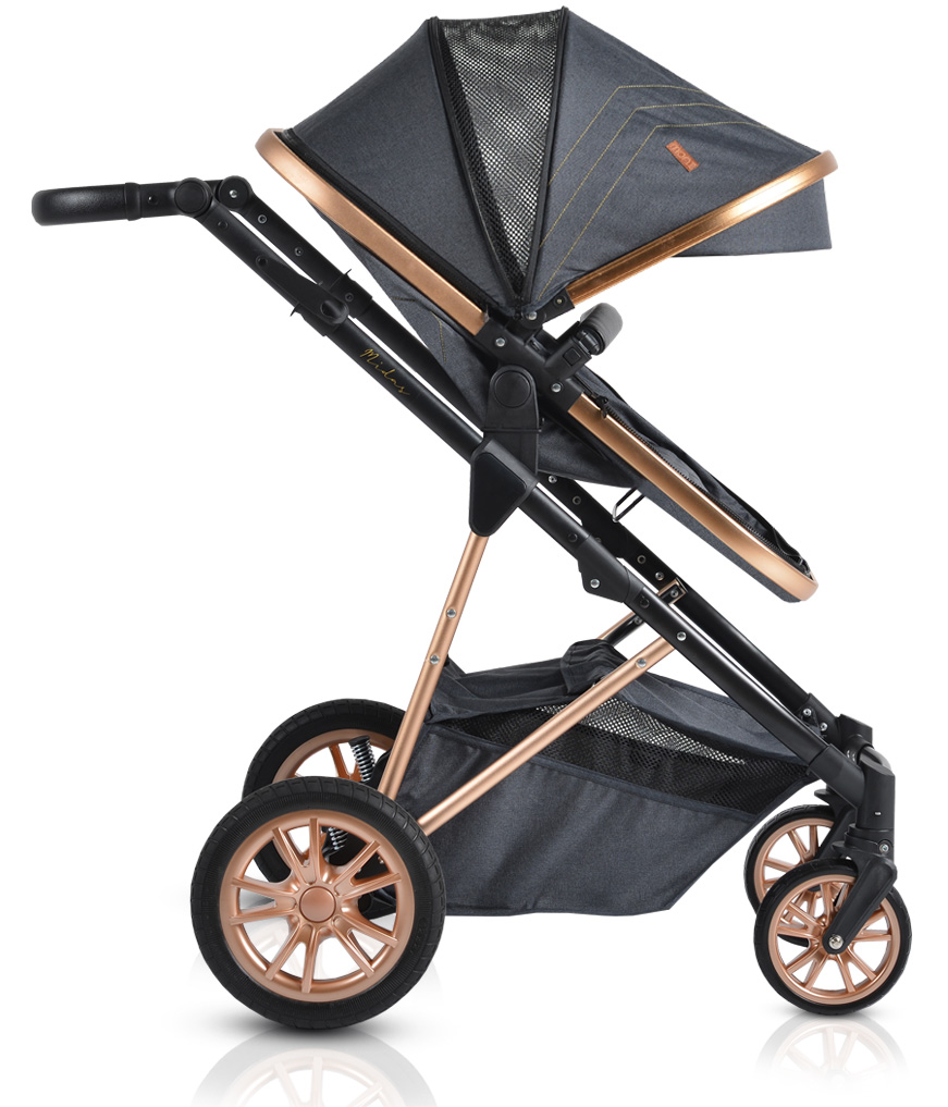 Един чудесен избор е страхотният модел комбинирана количка  Midas, която притежава много лека, алуминиева конструкция. Това я прави удобна за управление от майките и изключително маневрена. Друго удобство на модела е, че има възможност за обръщане на седалката в двете посоки – към майката и по посока на движението. Към количката се включва кош за новородено от 0 до 6 месеца, който много лесно може да се трансформира в седалка, когато детенцето ви порасне.