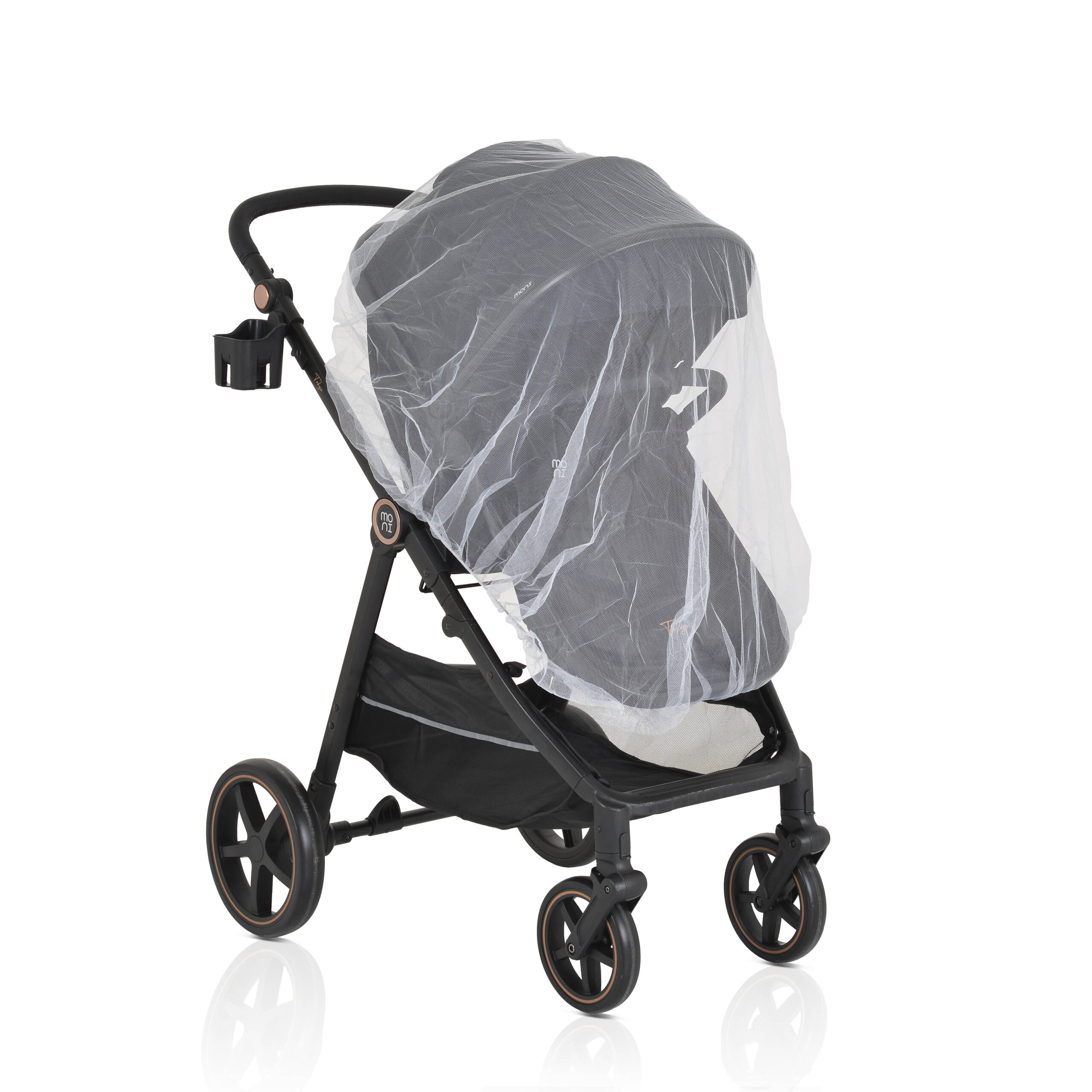 Комплектът включва : покривало за крачета, чанта за аксесоари, мрежа против насекоми, поставка за чаша, адапторите за столче за кола са включени.