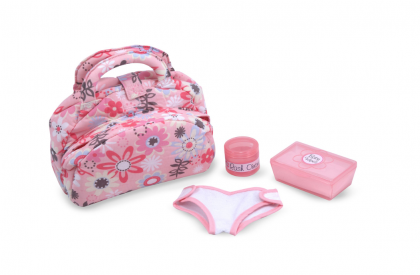 Сладката чантичка ще помогне на детето ви да се грижи с любов за своята любима кукла! Компактна и удобна, тя събира всичко необходимо за смяна на пелените и грижи по време на игра.