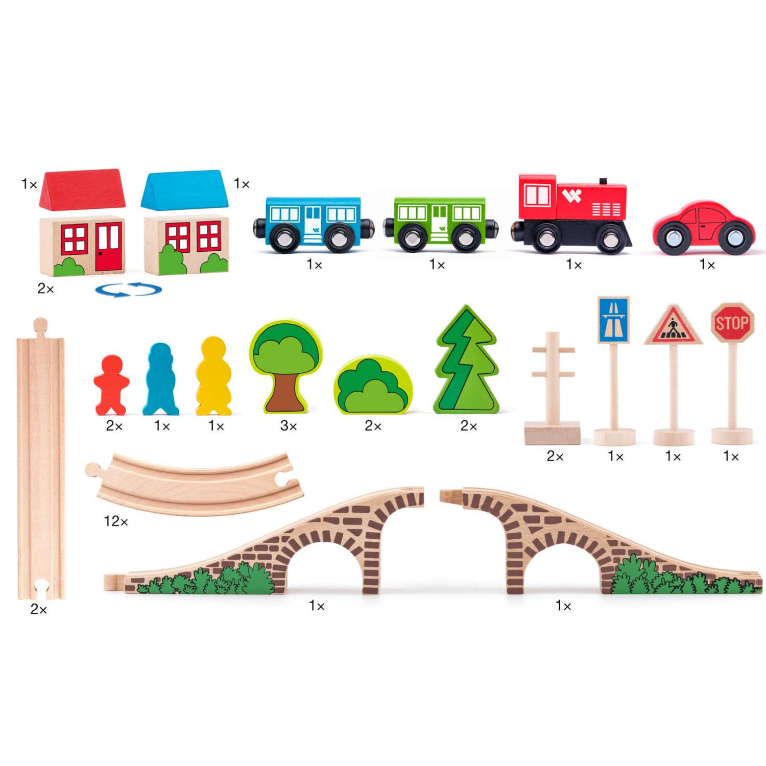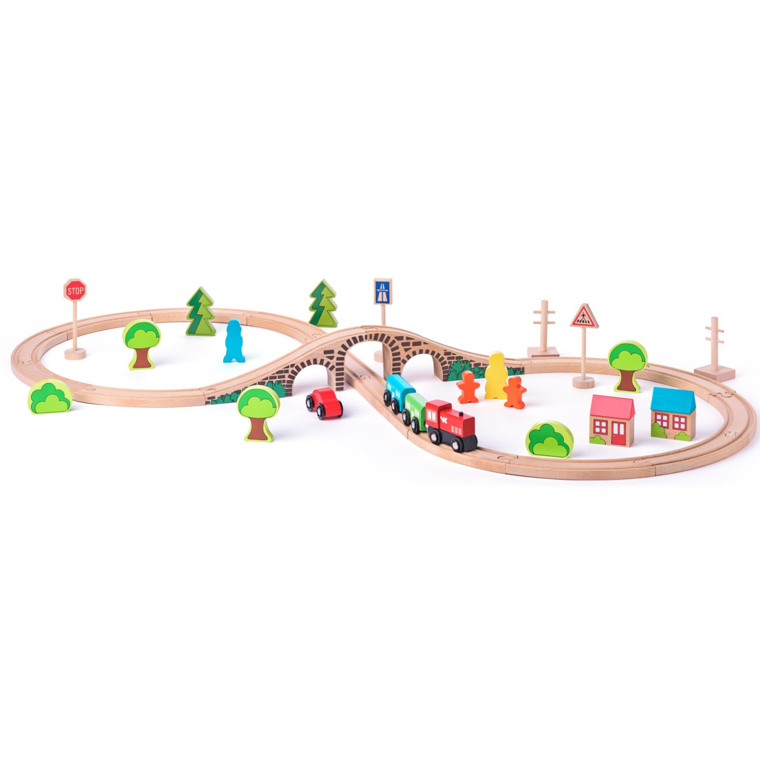 Комплект дървено влакче с релси и аксесоари, 40 части