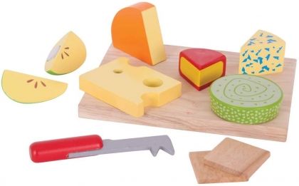 • Комплектът съдържа: дъска, нож, 3 сирена, 2 плода и 2 филии хляб.