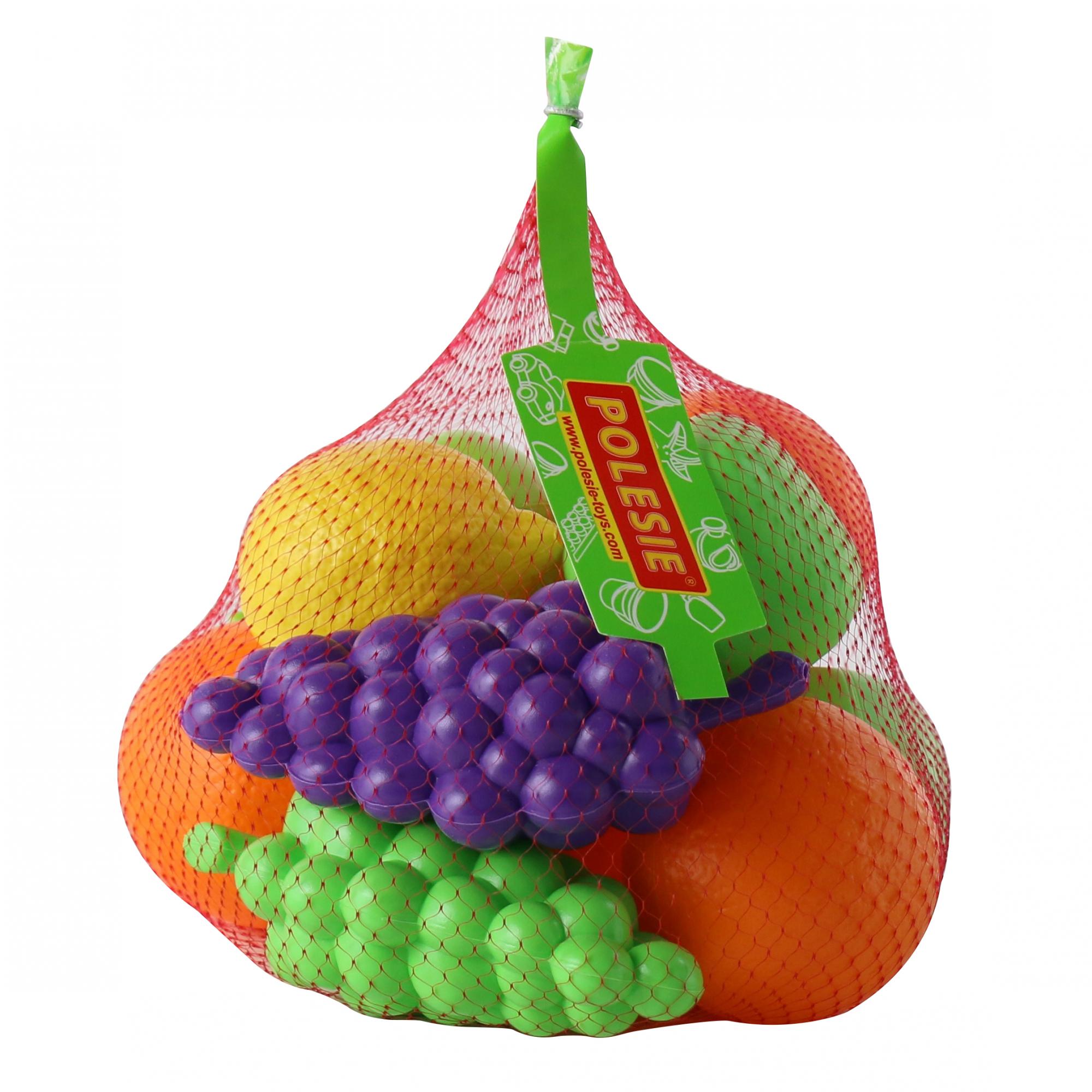 Този цветен комплект включва 12 пластмасови плода – портокали, ябълки, круши, лимони и грозде в различни цветове. Перфектен е за ролеви игри и за допълнение към детската кухня.