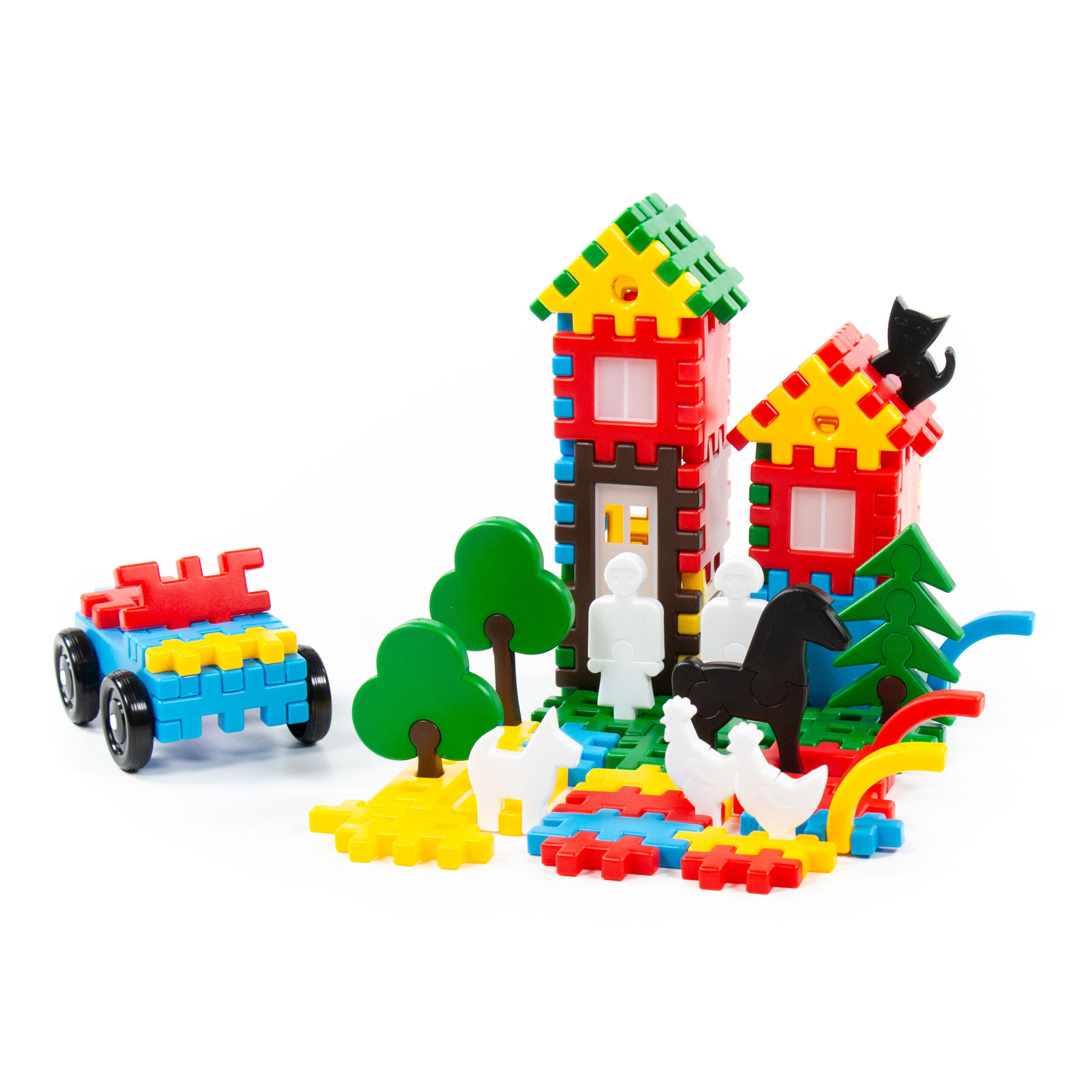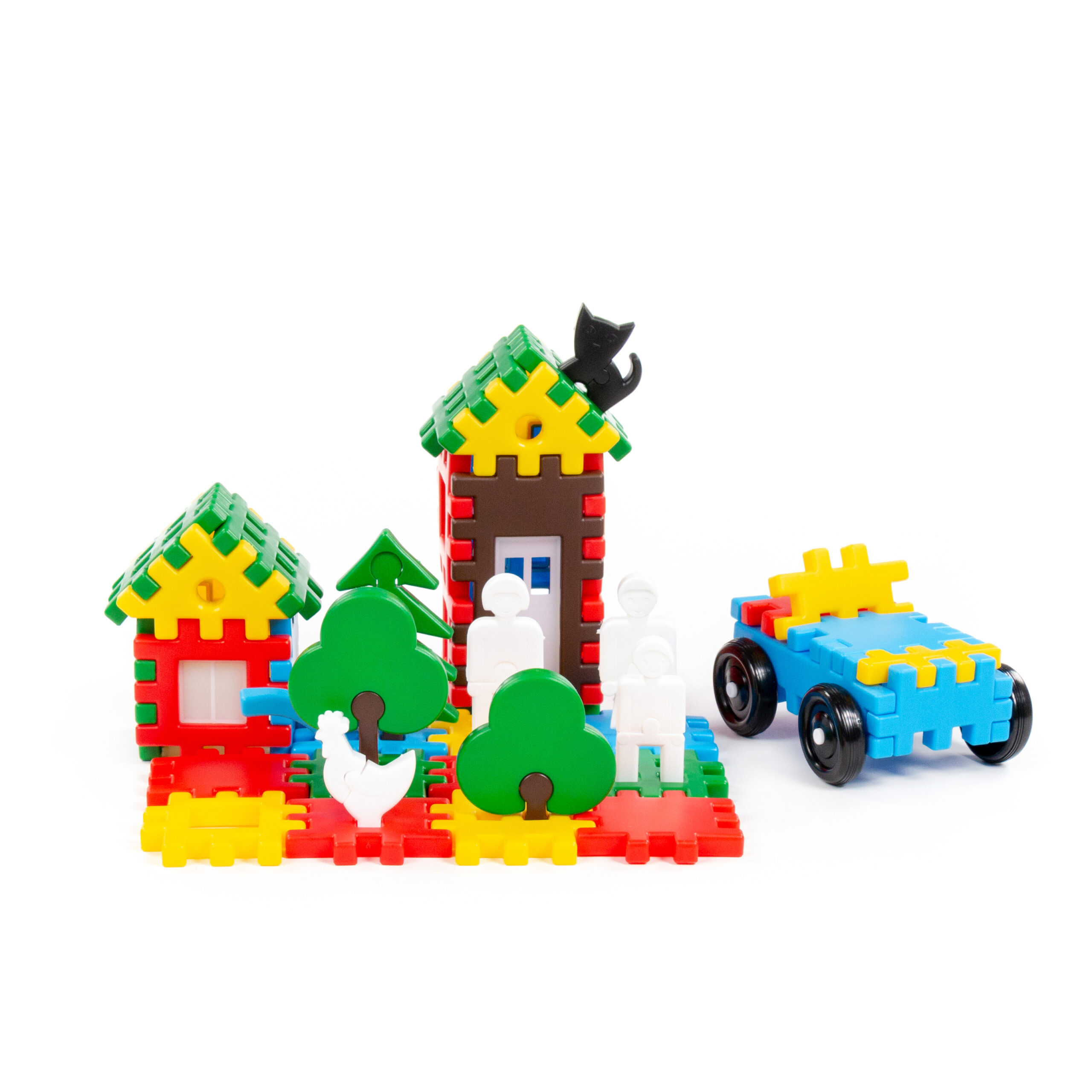 Комплектът включва 108 части от устойчива пластмаса. Елементите с различни форми ще позволят на детето да създаде различни фигури и сгради. Игрите с дизайнера развиват фините двигателни умения, пространственото и творческо мислене. Строежът на сгради с комплекта изгражда концепцията за симетрия и асиметрия, и научава детето да избере необходимите блокове по размер и цвят и разбира се тренира въображението му.