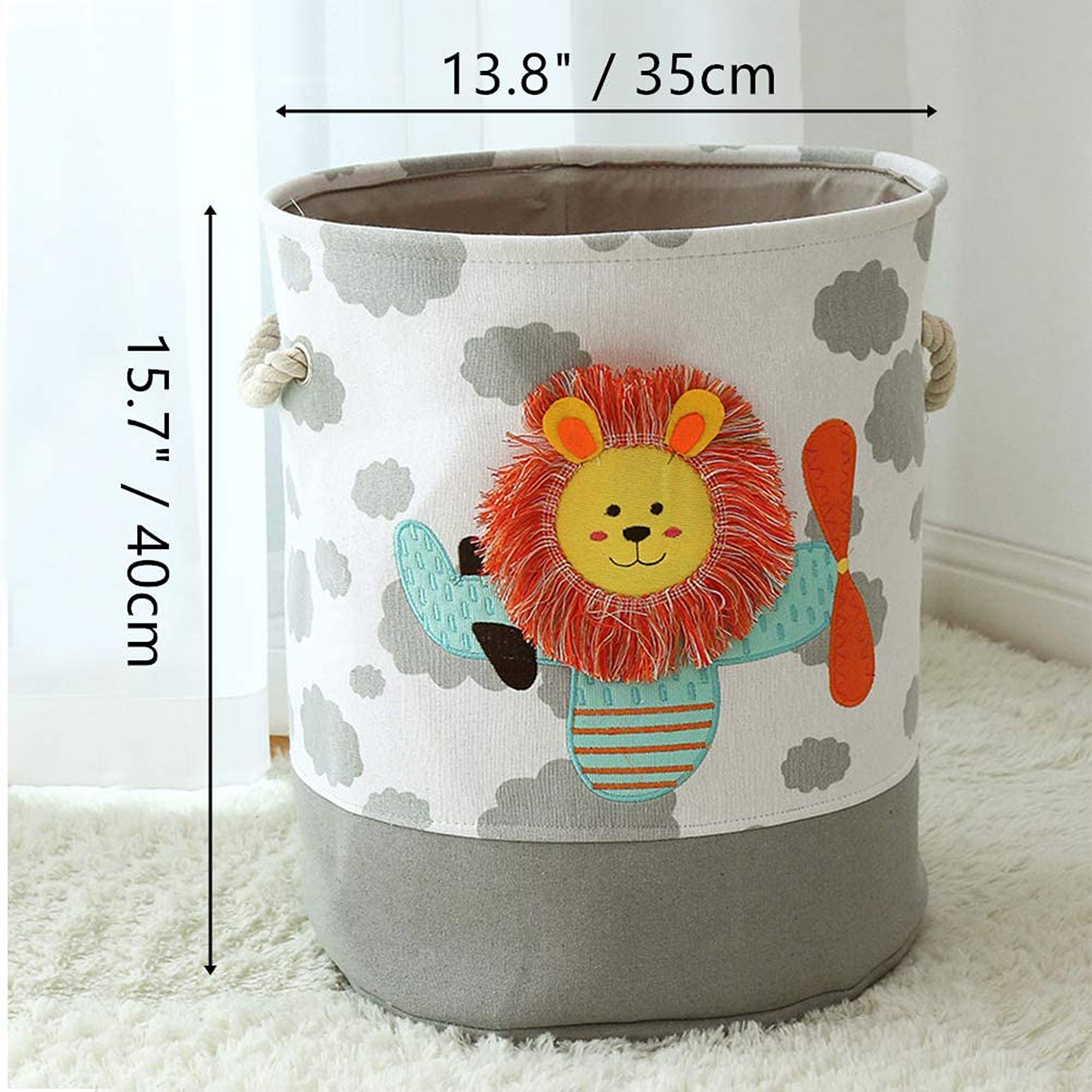 Кошът за играчки е с оригинален дизайн – Лъвче. Лесен за пренасяне благодарение на двете удобни дръжки във вид на въже.