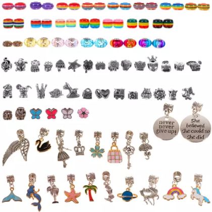 С 107 елемента в комплекта, детето има всички необходими материали, за да създаде разнообразие от цветни и оригинални гривни и колиета. Включени са 5 гривни и 5 колиета, върху които могат да бъдат поставени мънистата и висулките. Това предоставя безброй възможности за създаване на различни дизайни, като всяко бижу може да бъде уникално и персонализирано. Възможността да комбинира различни форми и цветове на висулките ще позволи на детето да изрази своята креативност и да създаде бижута, които отразяват нейния собствен стил.