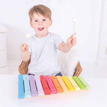 Този чудесен дървен ксилофон е прекрасно забавление за деца над 3-годишна възраст. Той е екологичен, здрав и издържан в контрастни, ярки цветове, за да създаде весело настроение и истински възторг у децата. Освен страхотно средство за забавление, дървеният ксилофон развива музикалния слух, координативните умения и сръчността.