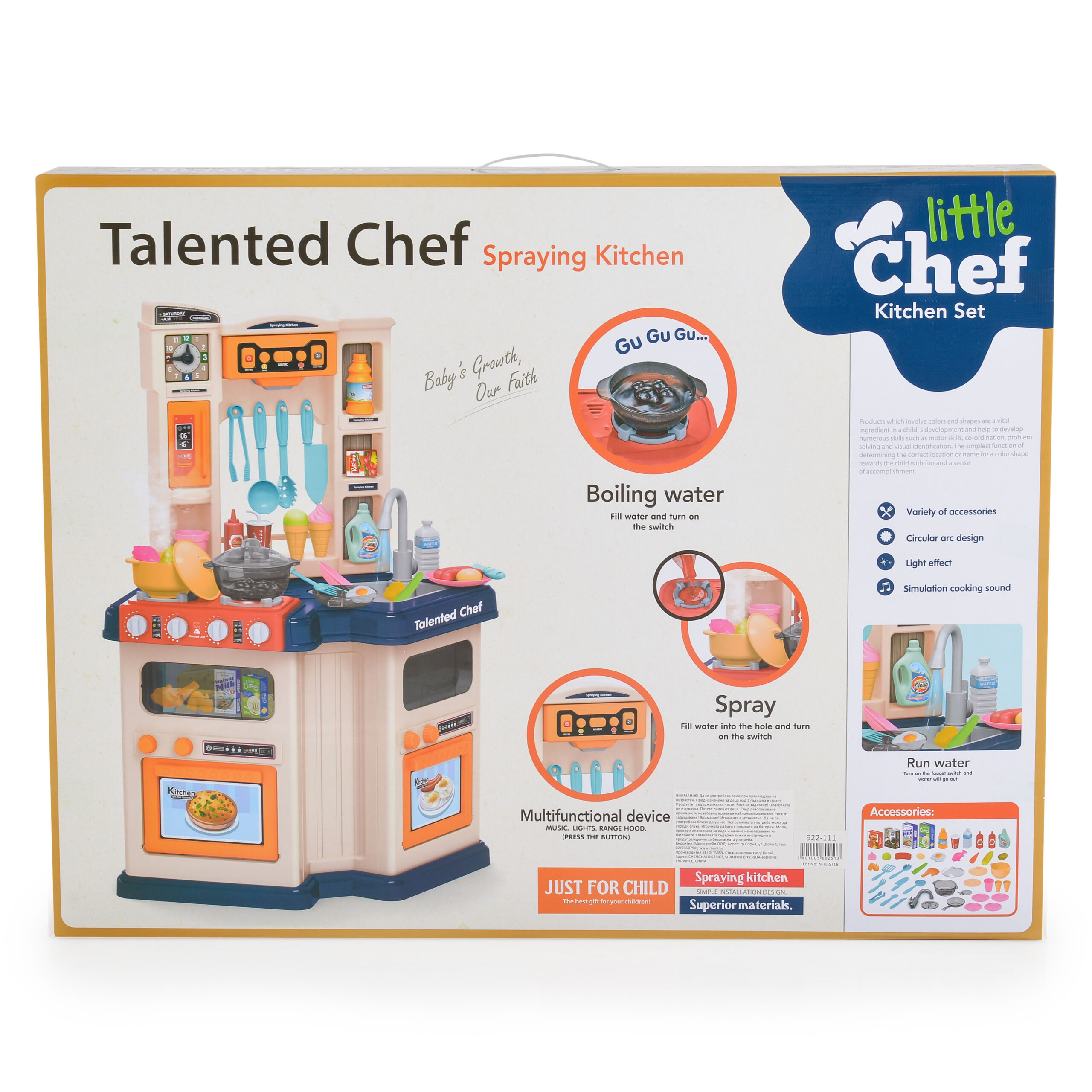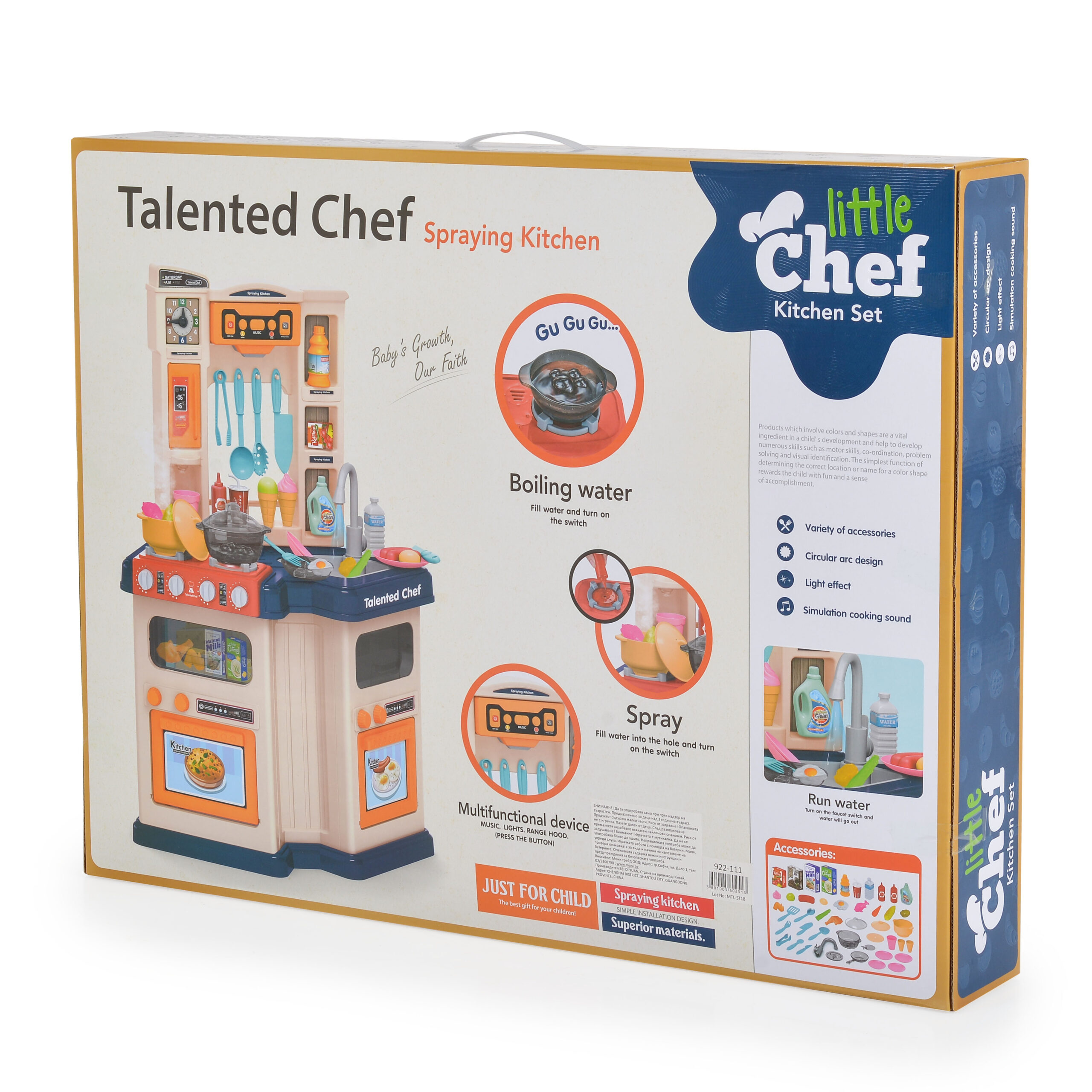 Детската кухня 922-11 предлага реалистично изживяване за малките готвачи, благодарение на течащата вода от мивката, светлинните и звукови ефекти и богатия комплект аксесоари. Играчката насърчава въображението, ролевите игри и координацията на детето.