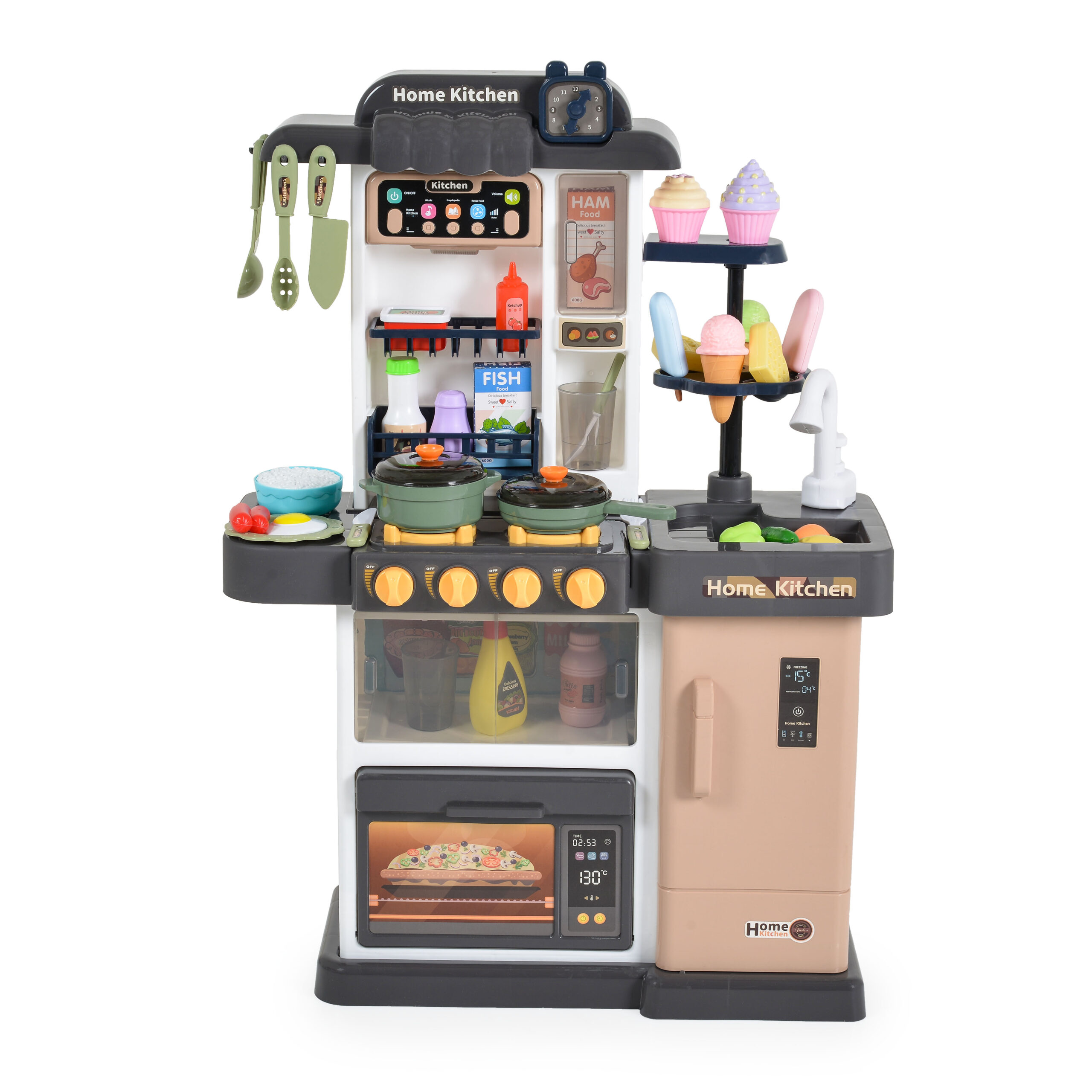 Превърнете играта в истинско кулинарно приключение с интерактивната детска кухня с пара и течаща вода! Със своя реалистичен дизайн, светлинни и звукови ефекти, тя предлага на малките готвачи изживяване, което наподобява истинско готвене. Подходяща за деца над 3 години, тази кухня ще се превърне в любимо място за игра и творчество.