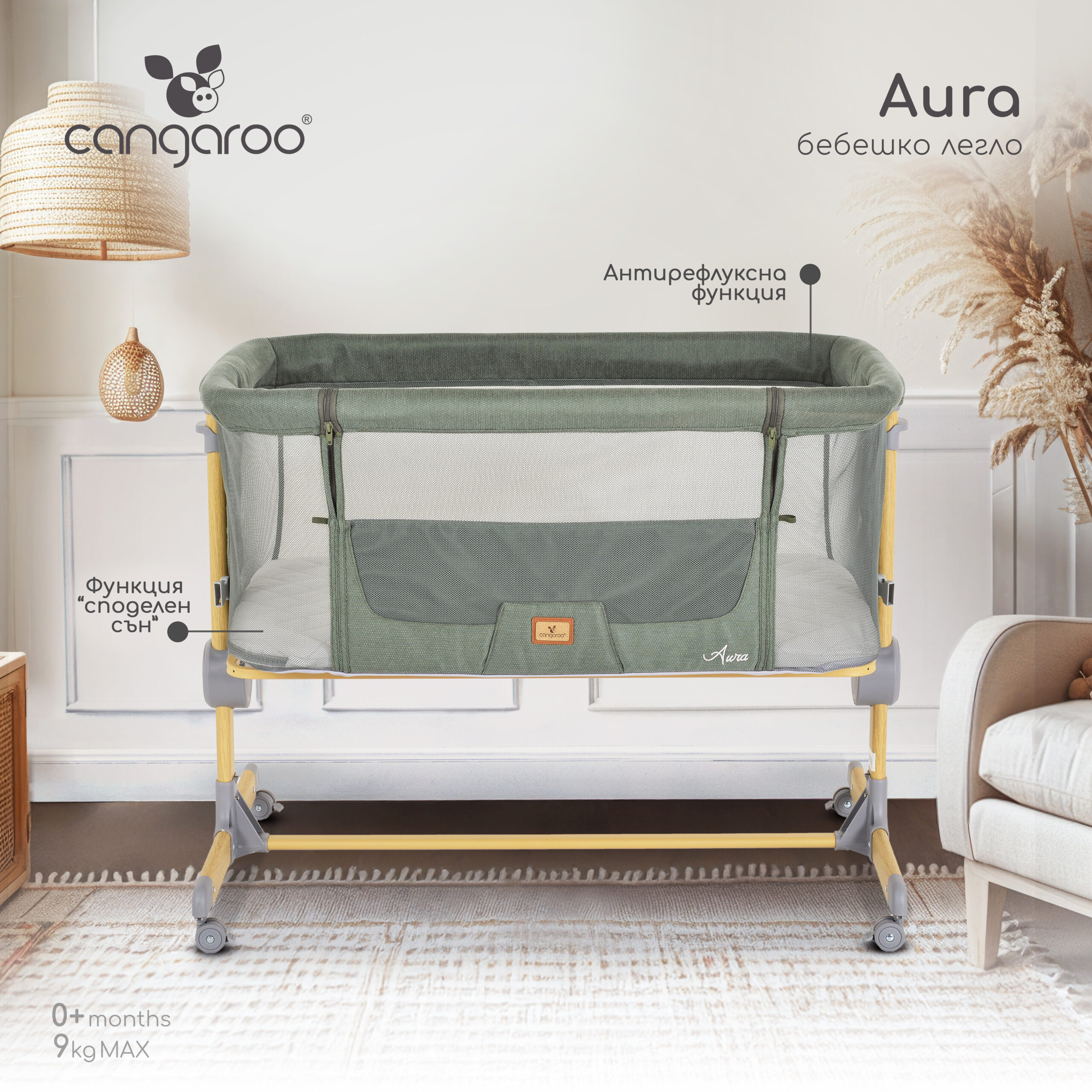Бебешко легло Aura е създадено с внимание към всеки детайл, за да бъде вашето бебе винаги до вас!