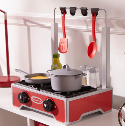 • Печка с дървена основа – Печката е изработена от качествени материали и има два отделни котлона, на които децата могат да „готвят“ своите ястия. Това дава възможност за много ролеви игри, в които детето може да бъде както готвач, така и помощник в кухнята.