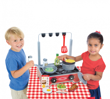 • Тиган и тенджера – Тези основни кухненски съдове ще позволят на детето да „готви“ ястия като супи, пържени ястия или десерти, като развива представите си за различните видове храни и начините за тяхното приготвяне.