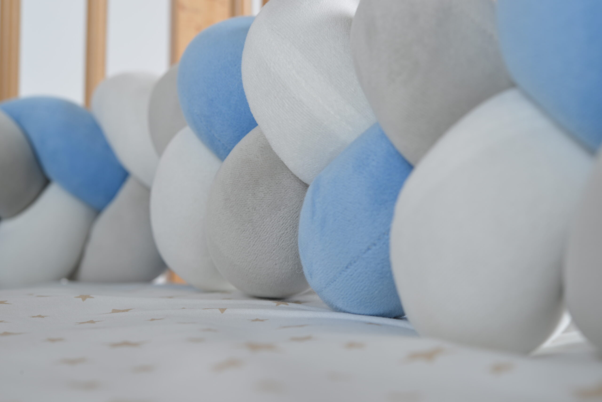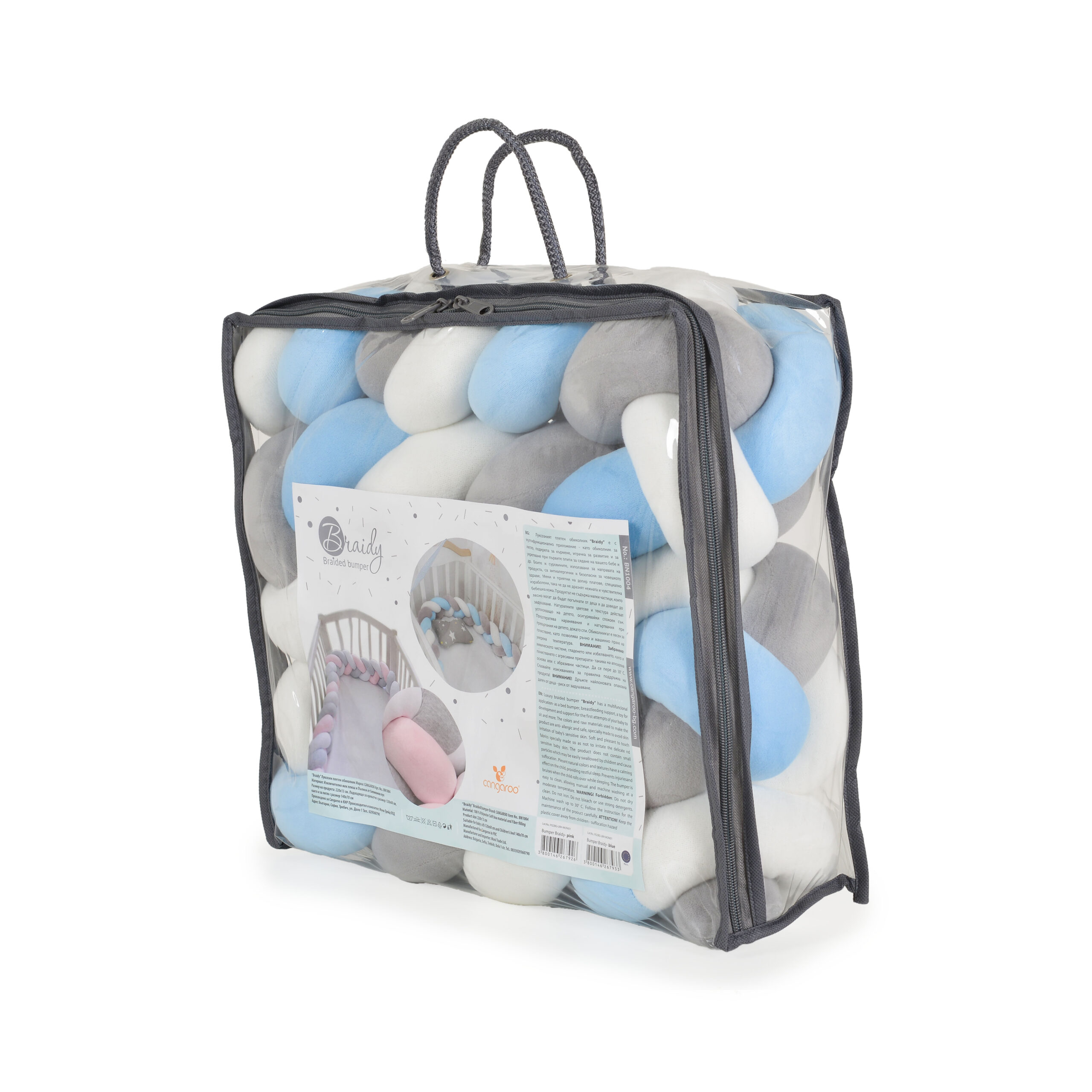 Луксозен плетен обиколник “Braidy“ е с мултифункционално приложение- като обиколник за легло, подкрепа за кърмене, играчка за развитие и за укрепване при първите опити за сядане на вашето бебе и др. Изработен от меки и приятни на допир платове и пълнежът – от екологосъобразен силиконов. Неутрални цветове и текстура действат успокояващо на детето, осигуряващо спокоен сън. Предотвратява наранявания и натъртвания при превъртане на детето, докато спи.