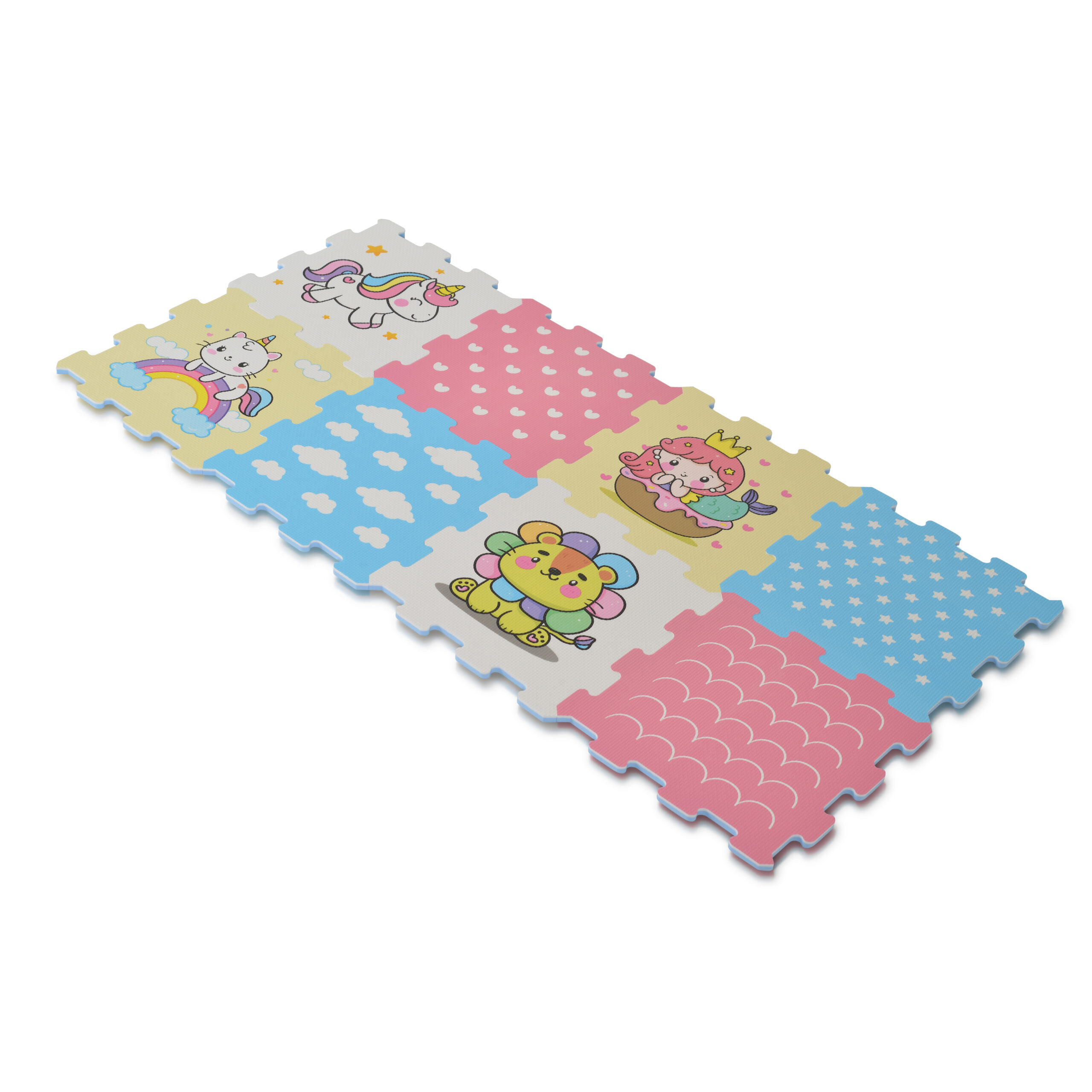 Мек пъзел, килимче от 8 части с цветен и забавен принт.