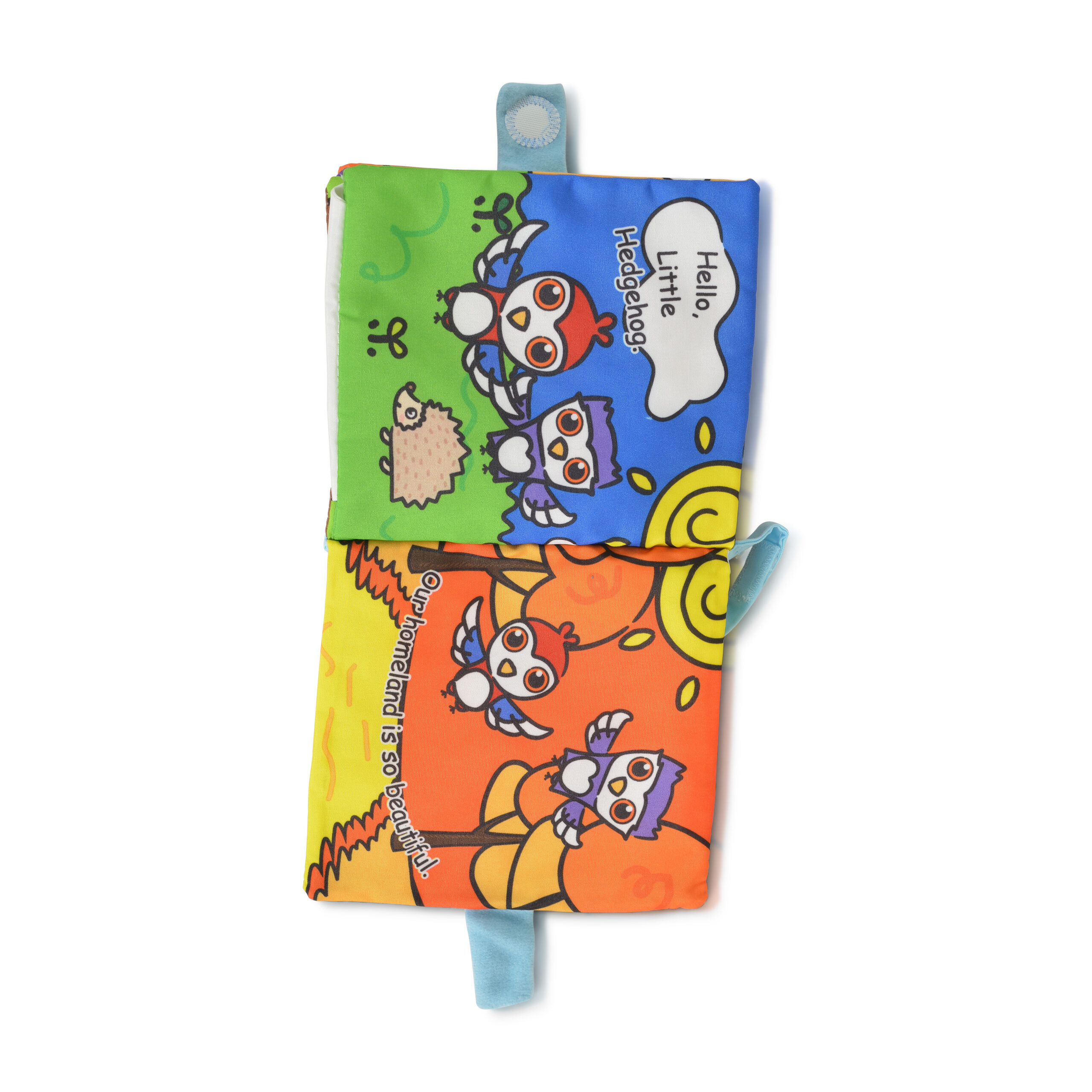 На всяка една страничка има различни текстури, цветове и подвижни елементи. Има велкро лепенки за закрепване към количката, креватчето или къде родителят пожелае.
