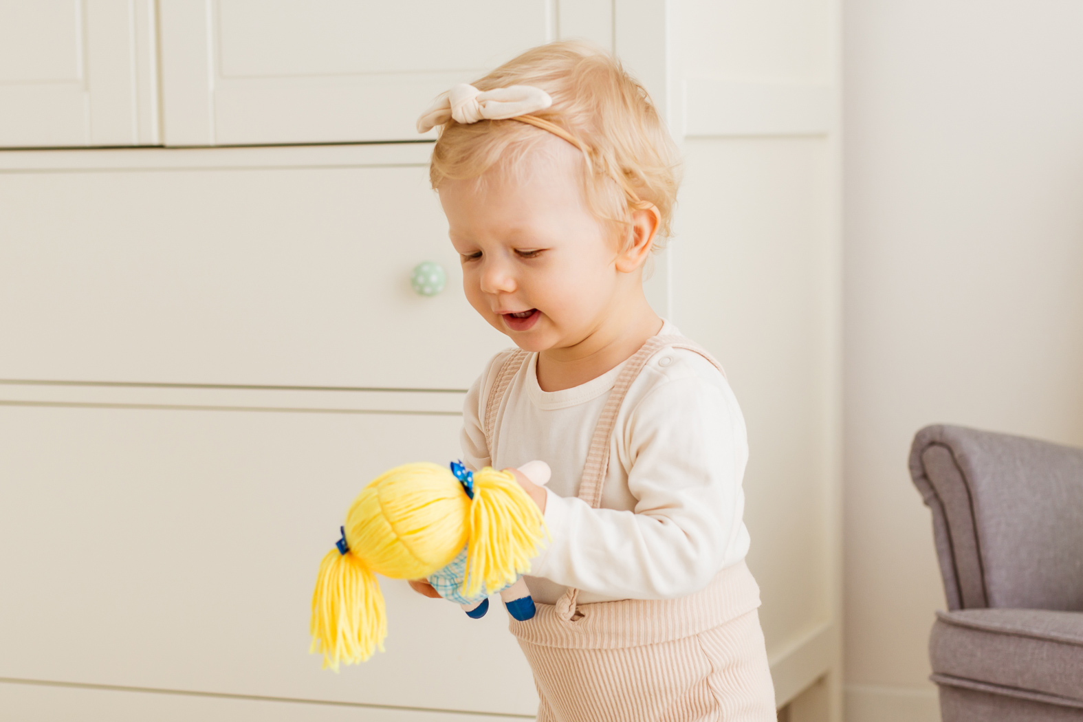 Куклата може да придружава детето в различни дейности, като го насърчава да бъде креативно и да създава самостоятелно сценарии за игра.