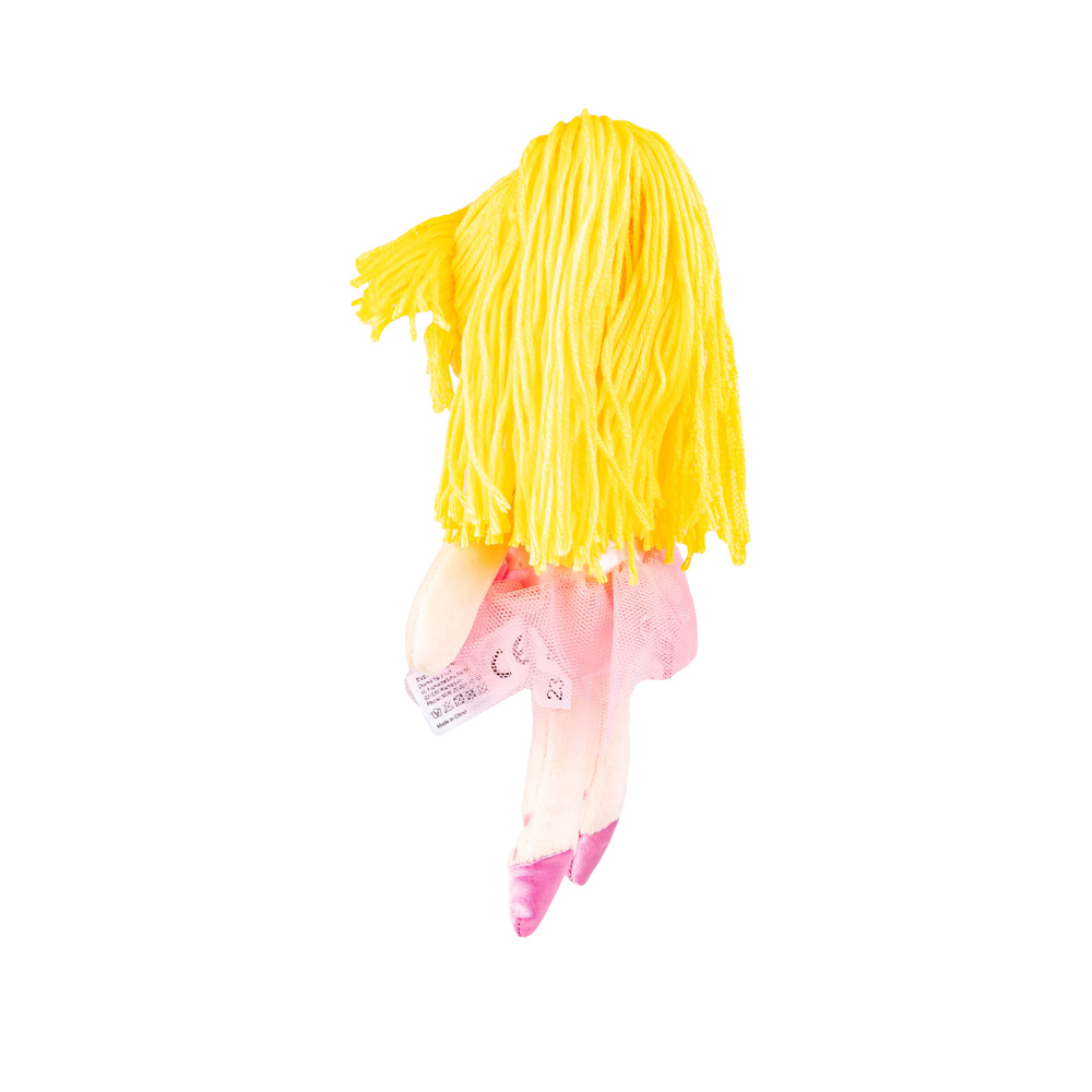 Куклата е облечена в красива рокля, изработена от различни материали, която стимулира усещането за докосване на бебето, като влияе положително върху развитието на когнитивните му умения.