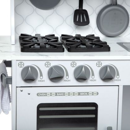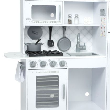 Тази съвременна кухненска играчка в бял цвят е перфектното място за малките да развият своите готварски умения и въображение. Проектирана с внимание към детайлите, кухненската играчка е оборудвана с всичко необходимо за едно истинско готварско изживяване, което ще забавлява вашето дете часове наред.