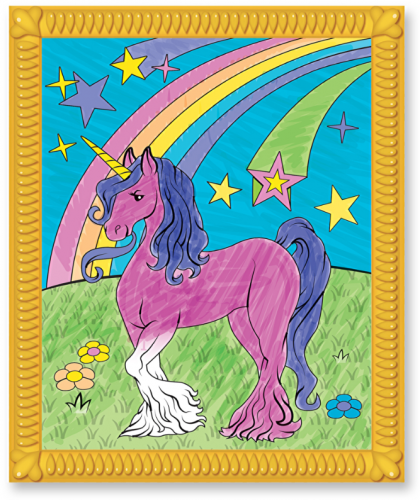 Този творчески комплект ще предостави на вашето дете безброй часове забавление и възможности за развитие. С помощта на твърдата книжка и шестте ярки маркера (розов, оранжев, жълт, син, зелен и лилав), детето ще може да оцветява 12 невероятни картинки, като използва съвсем нов и интересен подход.