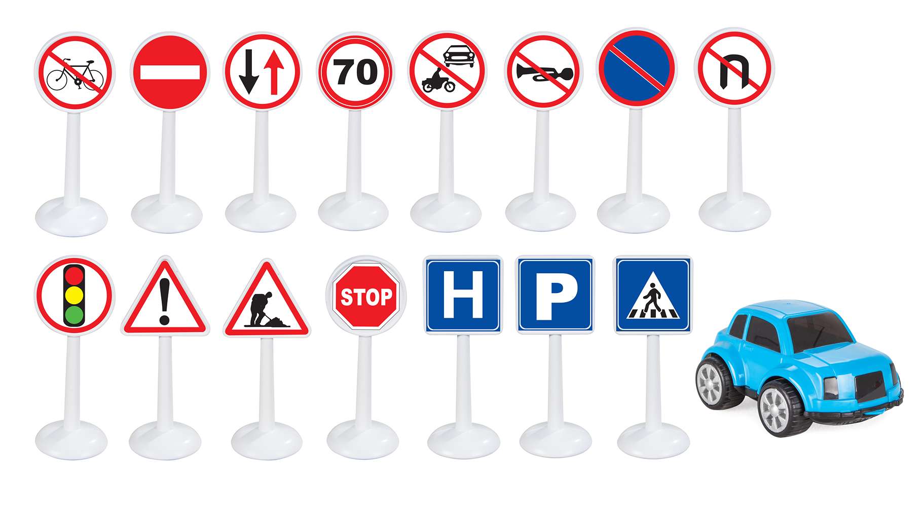 16 различни пътни знаци.