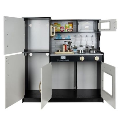 Модерна дървена кухня за игра със звуци, светлина и аксесоари – черна – Kruzzel