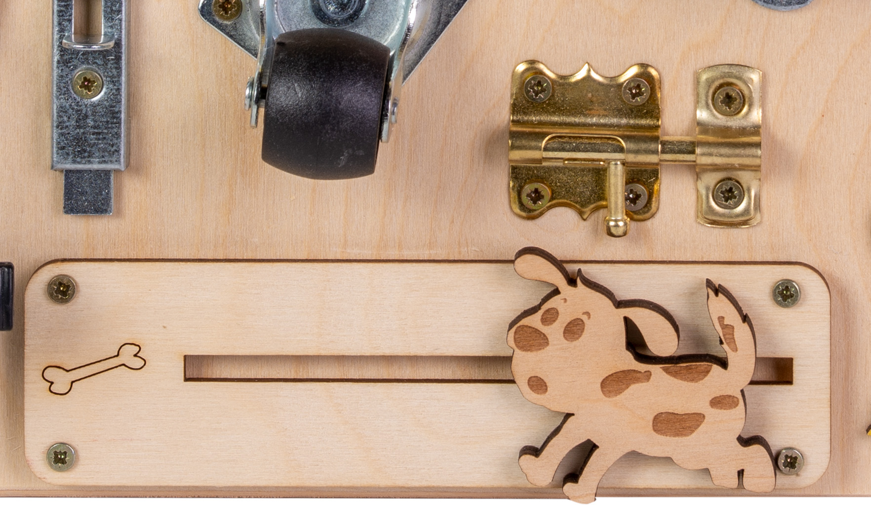 • Два вида резета и кука за заключване, които подобряват фината моторика и логиката.