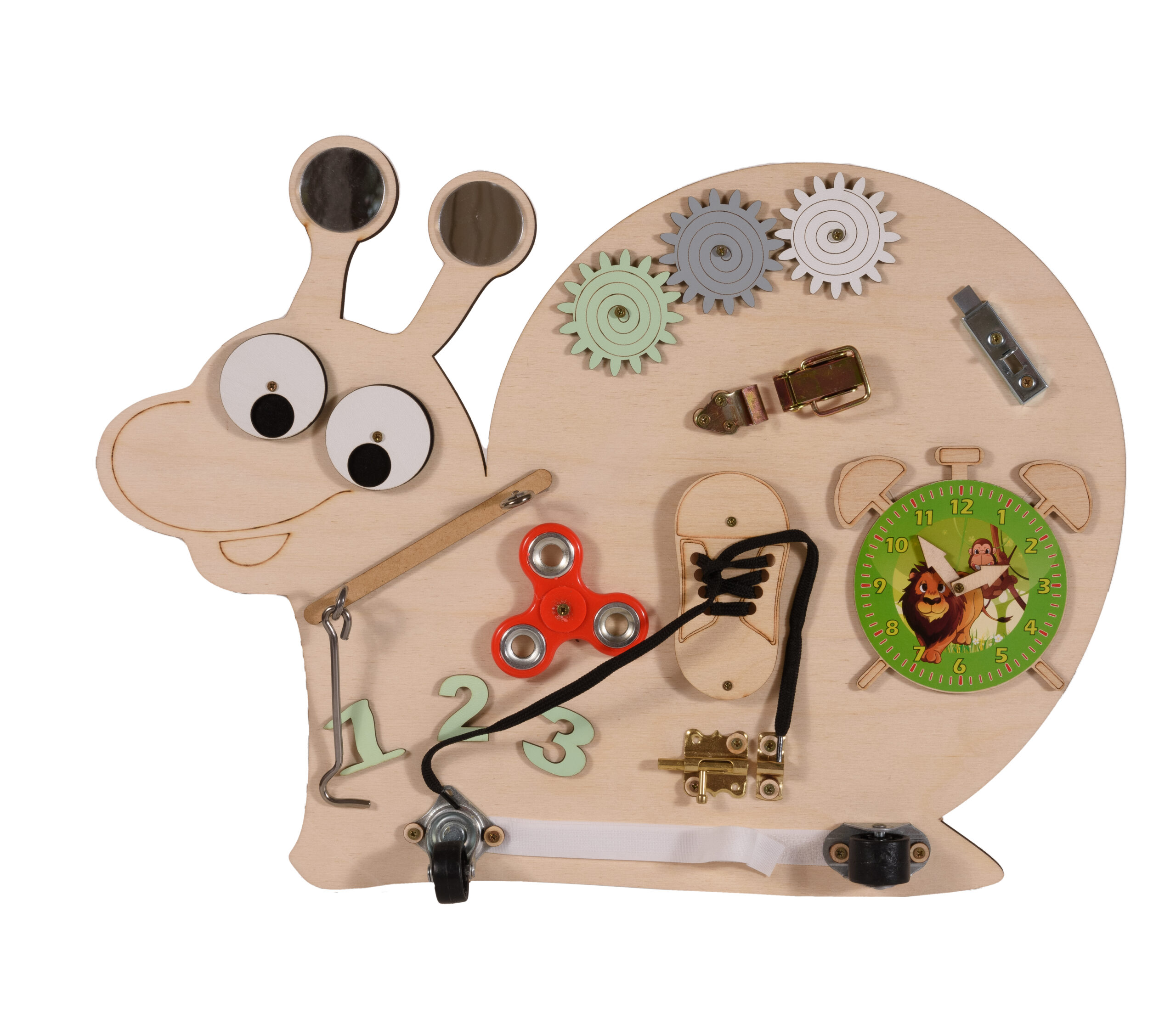 Дъска Монтесори Охлюв e оборудвана с: