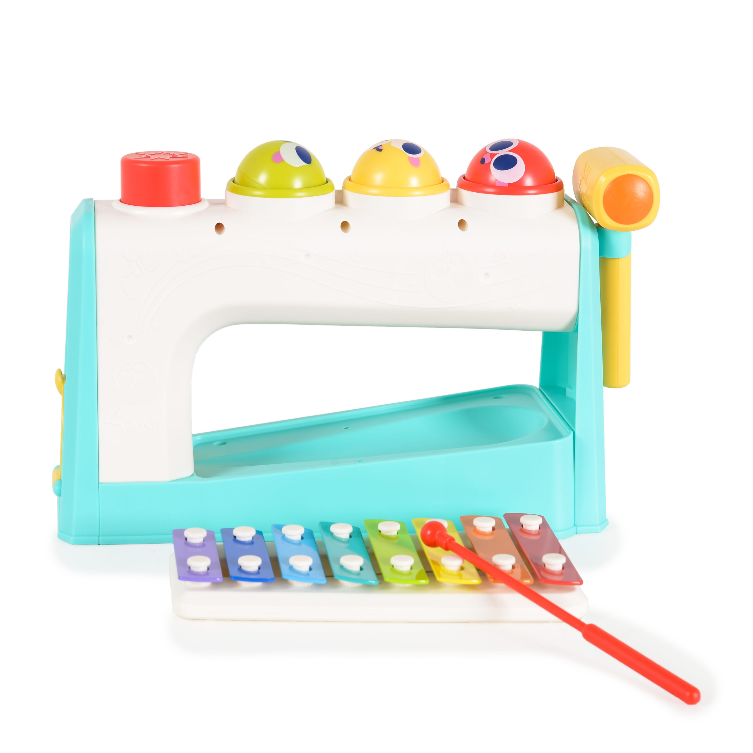 Ярък и забавен музикален център за най-малките, който съчетава музика, светлини и различни активности, стимулирайки сетивното развитие, моториката и логическото мислене. Играчката включва бутони за музика, въртящи се елементи и светлинни ефекти, развива координацията, слуховото и визуалното възприятие, както и ученето чрез игра. Мултифункционален, весел и образователен – идеален подарък за малки изследователи.
