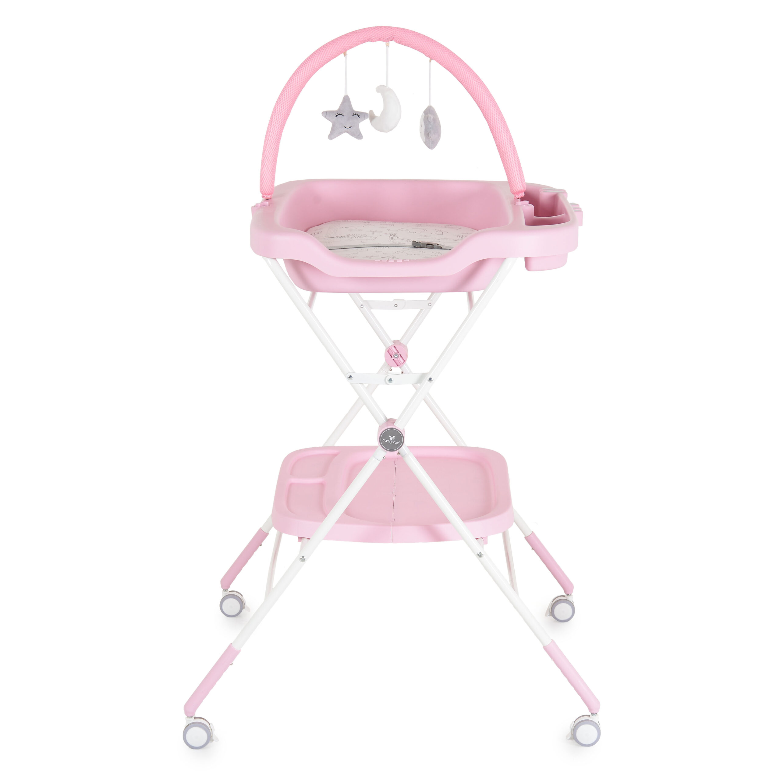 • Подвижна арка с 3 меки играчки – за забавление по време на смяна на пелени