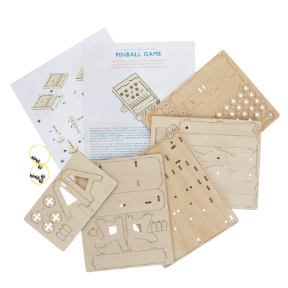 След сглобяването получавате напълно функционален дървен флипер, в който шестте метални сачмени лагера и двата ластика осигуряват динамична и вълнуваща игра. Децата не само ще се забавляват, но и ще усвоят основни занаятчийски умения, ще подобрят фината си моторика и ще развият логическото си мислене.
