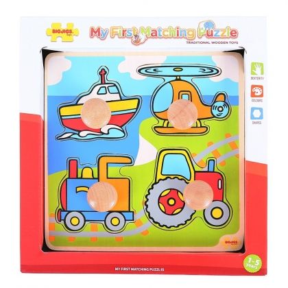 Знаеш ли кое превозно средство къде се движи? И да не знаеш, забавният пъзел на Bigjigs ще ти помогне и ще те запознае със хеликоптера, кораба, трактора и влака. Всяка част от пъзела на Bigjigs разполага с удобна за детските ръчички дръжка, правейки подреждането по-лесно и забавно, а под всяка от тях е нарисувано мястото на движение на превозното средство. Пъзелът стимулира фината моторика, логическото мислене и координацията. Изработен е от дърво и е боядисан в много свежи цветове с нетоксични бои, напълно безвредни за мъниците.