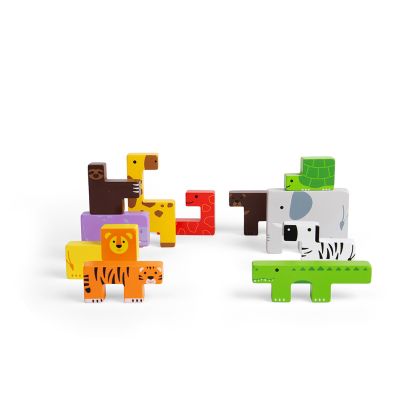 „Заключване на животни“ съчетава забавлението от класически пъзел с предизвикателството на дървена играчка за подреждане. Комплектът включва 11 ярко оцветени дървени блокчета с форми на животни, които децата могат да поставят, подреждат и комбинират.