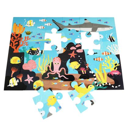 Пъзелът е идеален за развиване на фината моторика, координацията око–ръка и уменията за решаване на проблеми. Подреждането на частите подпомага логическото мислене и концентрацията, като същевременно предлага приятно и спокойно занимание без екран. Темата с океана може да бъде чудесен повод за разговори за морските животни и подводната природа.