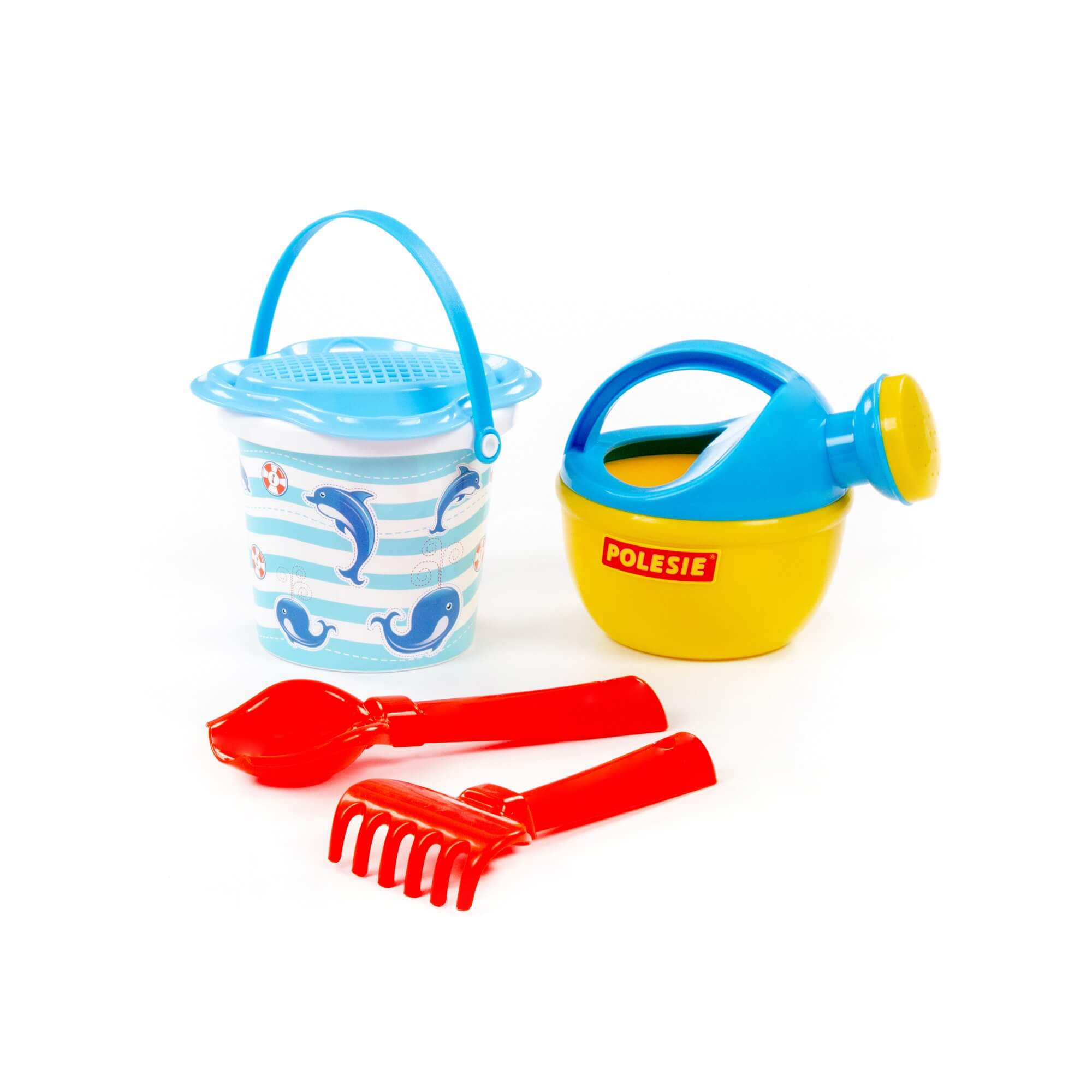 Плажен комплект от 5 части. Комплектът включва кофичка, сито, лопатка, гребло и лейка