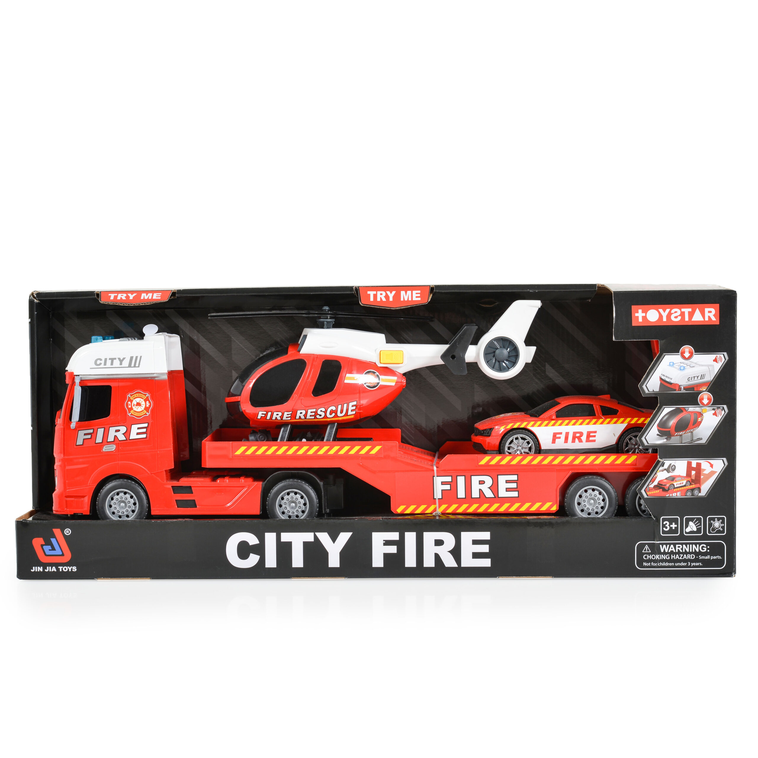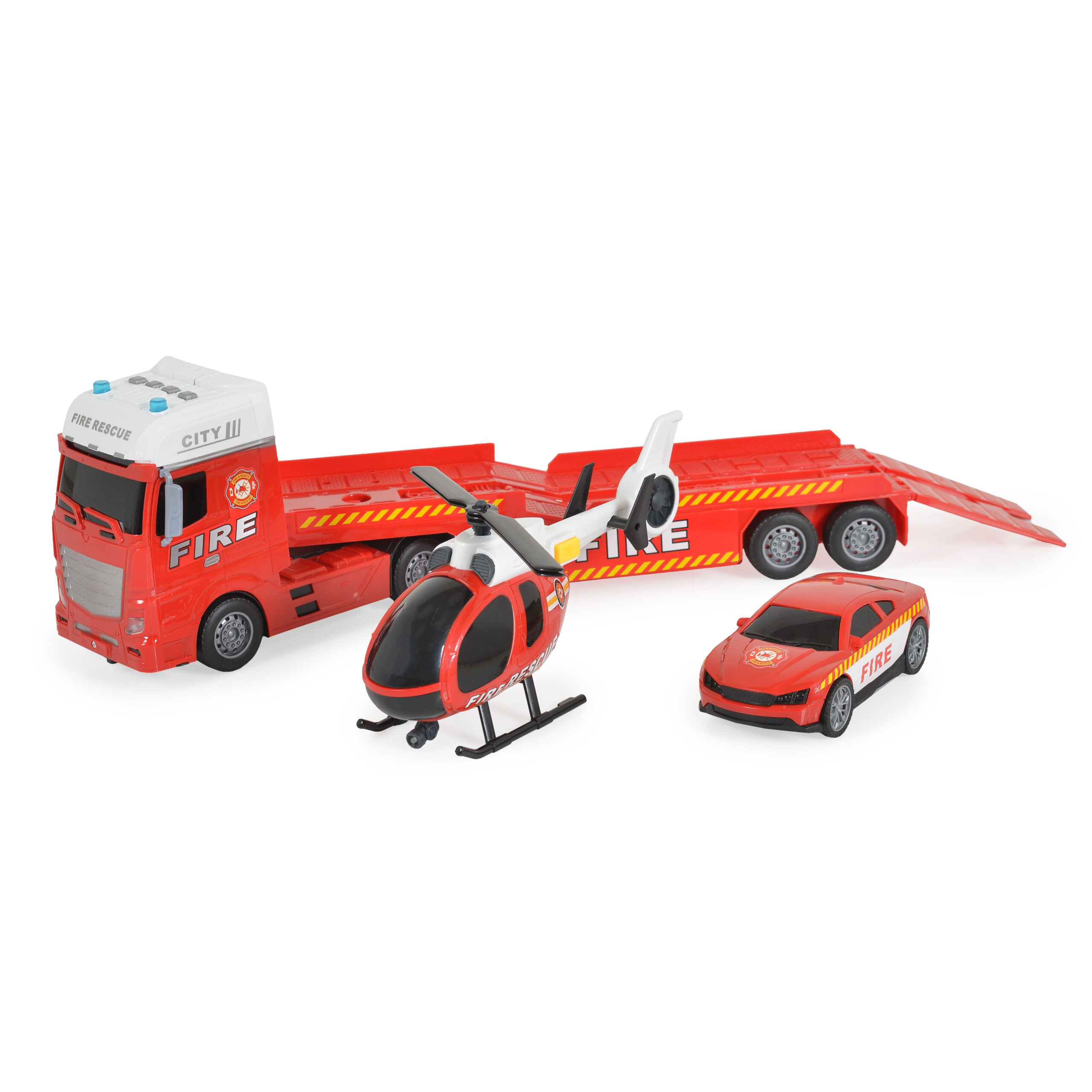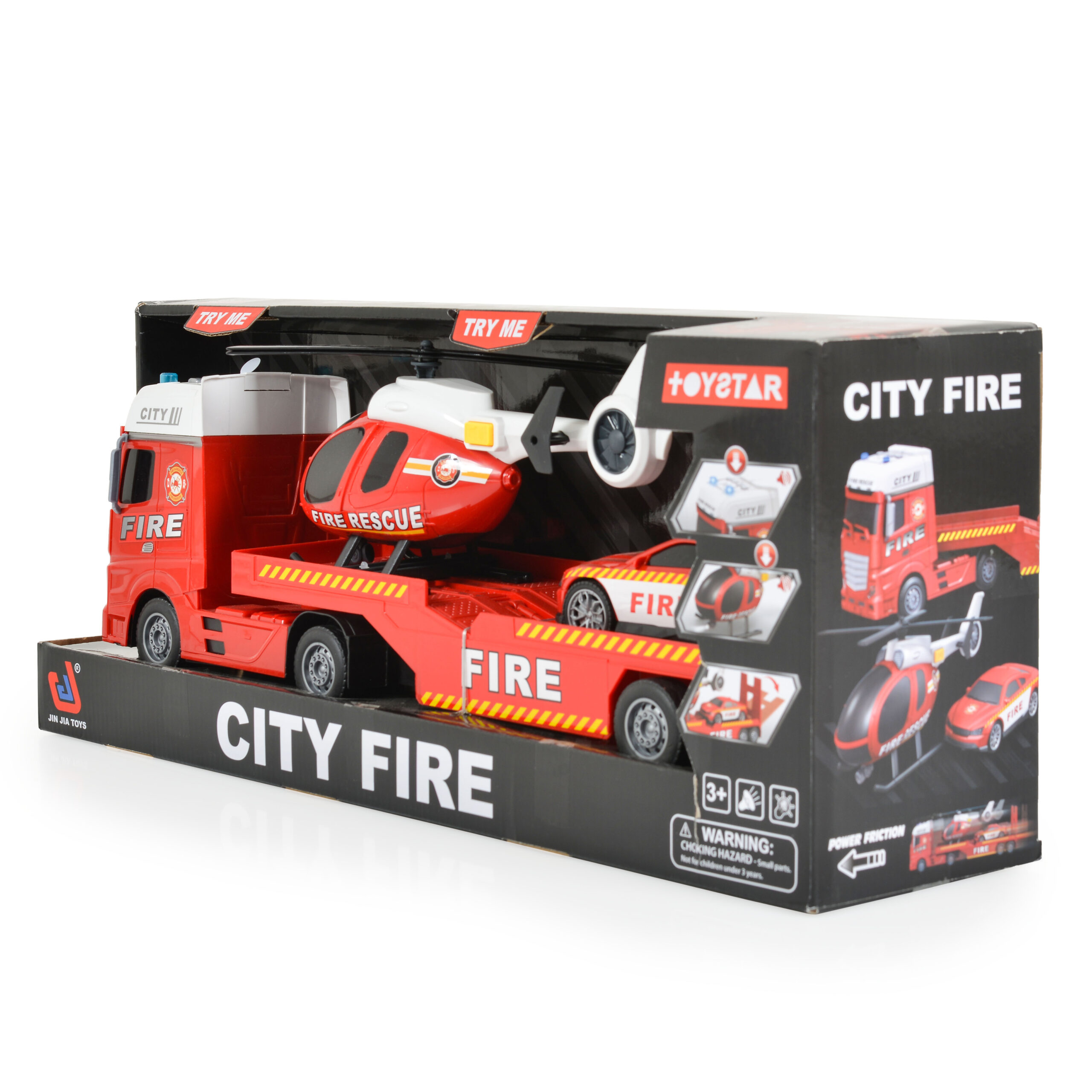 – Комплектът включва пожарен автовоз, хеликоптер и кола
