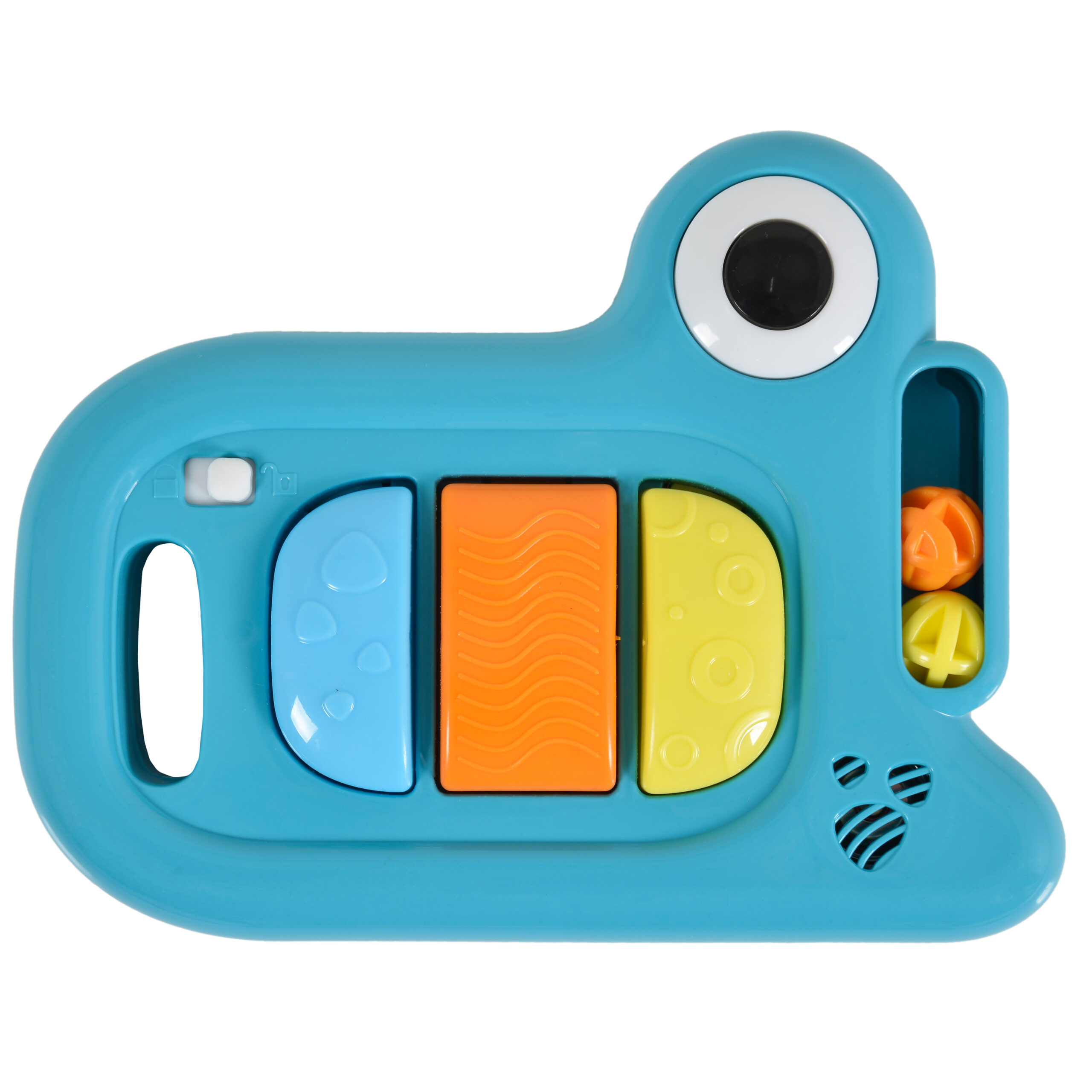 Има музикални бутони за забавление, както и въртящи се играчки.
