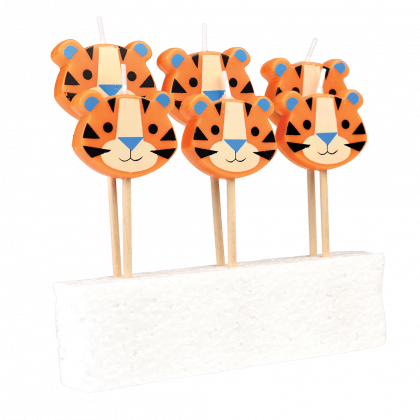 Свещичките са 6 на брой и всяка от тях е с общ размер 9,5 см (2,5 см свещ и 7 см пръчка). Придайте очарование и индивидуалност на рождения ден на вашето дете и го зарадвайте със свещички, изобразяващи тигърчето Зиги.
