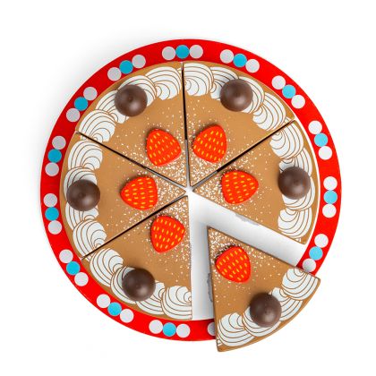 Нахранете се само с гледане с тази перфектно изглеждаща дървена торта. Идеална е за декорация на всяко парти. Комплектът включва и дървен нож за рязане на парчетата и лесното им поднасяне. С тази торта учите детето Ви на споделяне, а освен това и на важността от здравословното хранене. Насърчава сръчността, творчеството и въображението. Играчката е изработена с безопасни материали. Боите са на водна основа.